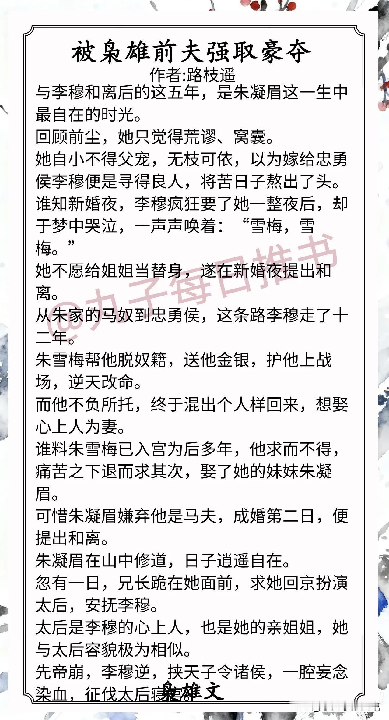 2.《被枭雄前夫强取豪夺》作者:路枝遥(娇软心机假太后vs糙汉疯狗前夫哥,恨海情天,追妻火葬场)