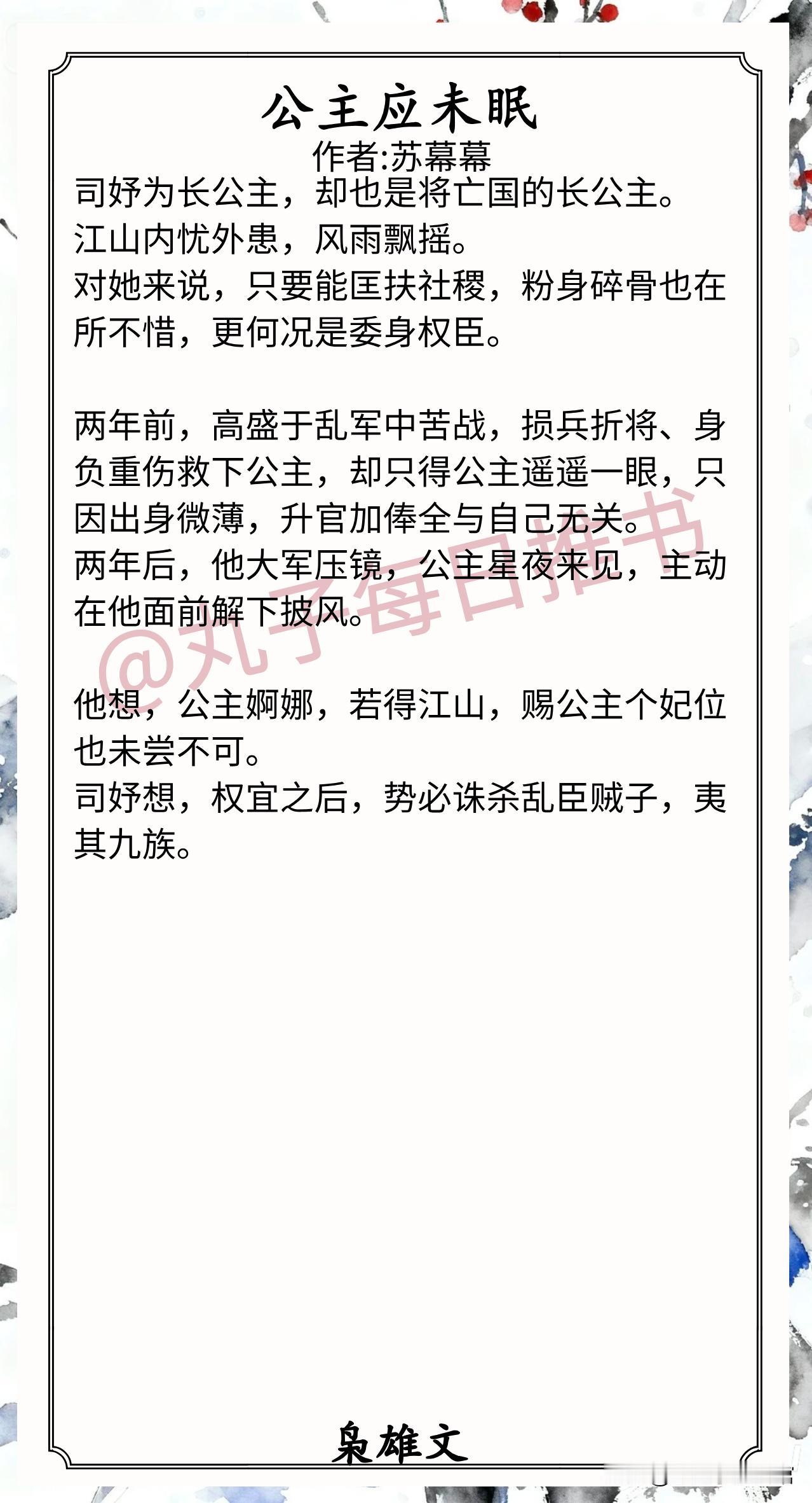 8.《公主应未眠》作者:苏幕幕(绝色公主vs乱世枭雄,相爱相杀,下位者的成长,上位者的沦陷)