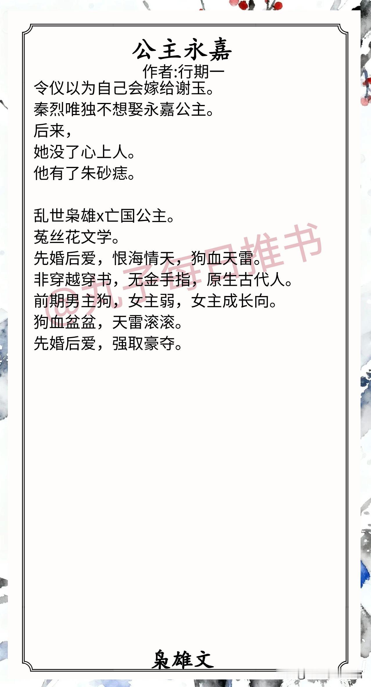 7.《公主永嘉》作者:行期一(亡国公主vs乱世枭雄,先婚后爱,恨海情天,菟丝花文学)