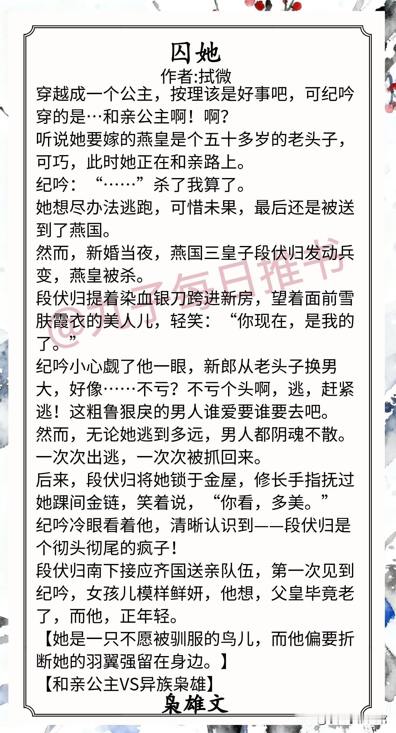 9.《囚她》作者:拭微(和亲公主vs异族枭雄,穿越,强取豪夺,追妻火葬场)小说 推文