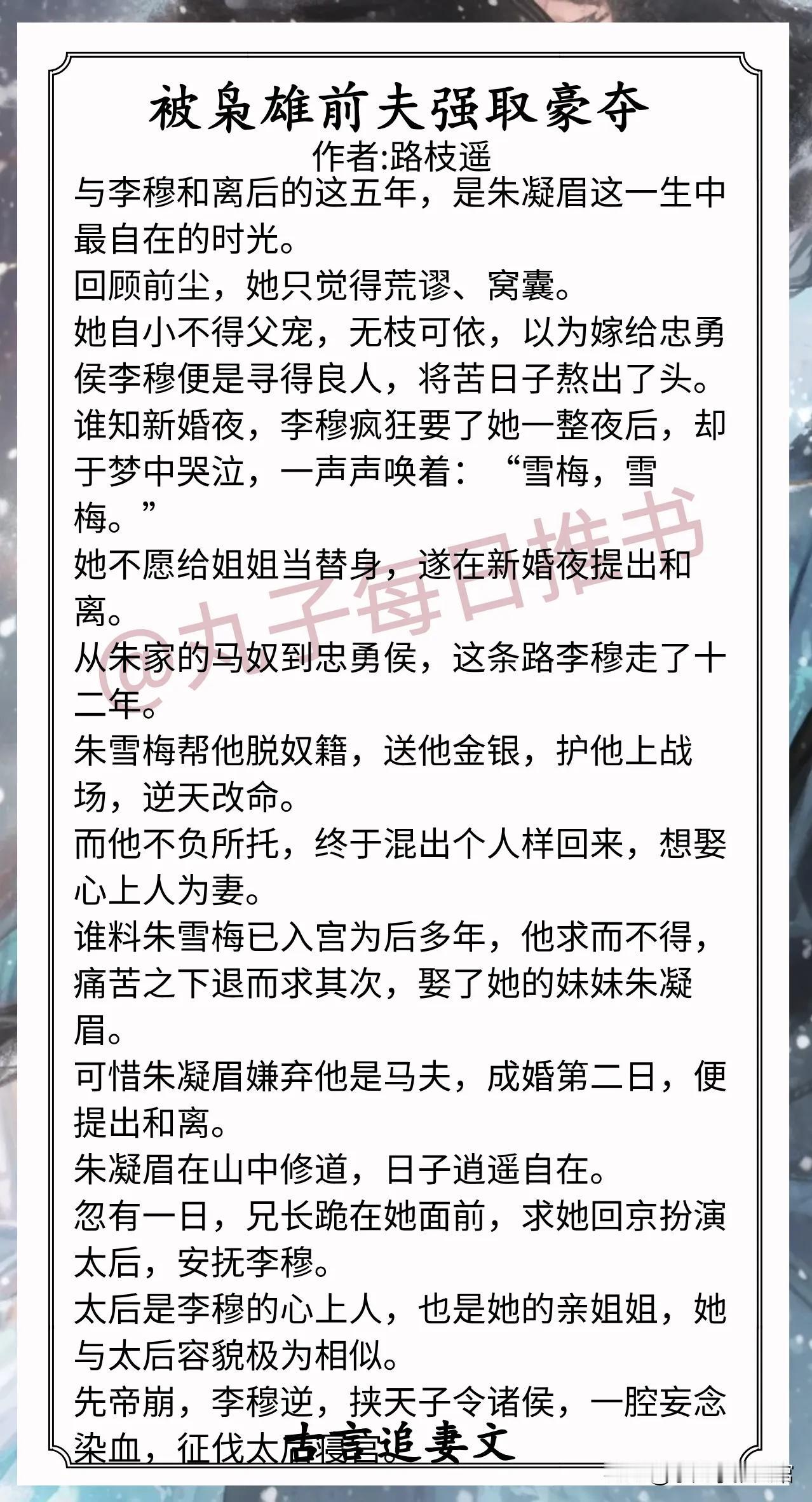 8.《被枭雄前夫强取豪夺》作者:路枝遥(娇软心机假太后vs糙汉疯狗前夫哥,恨海情天,追妻火葬场)
