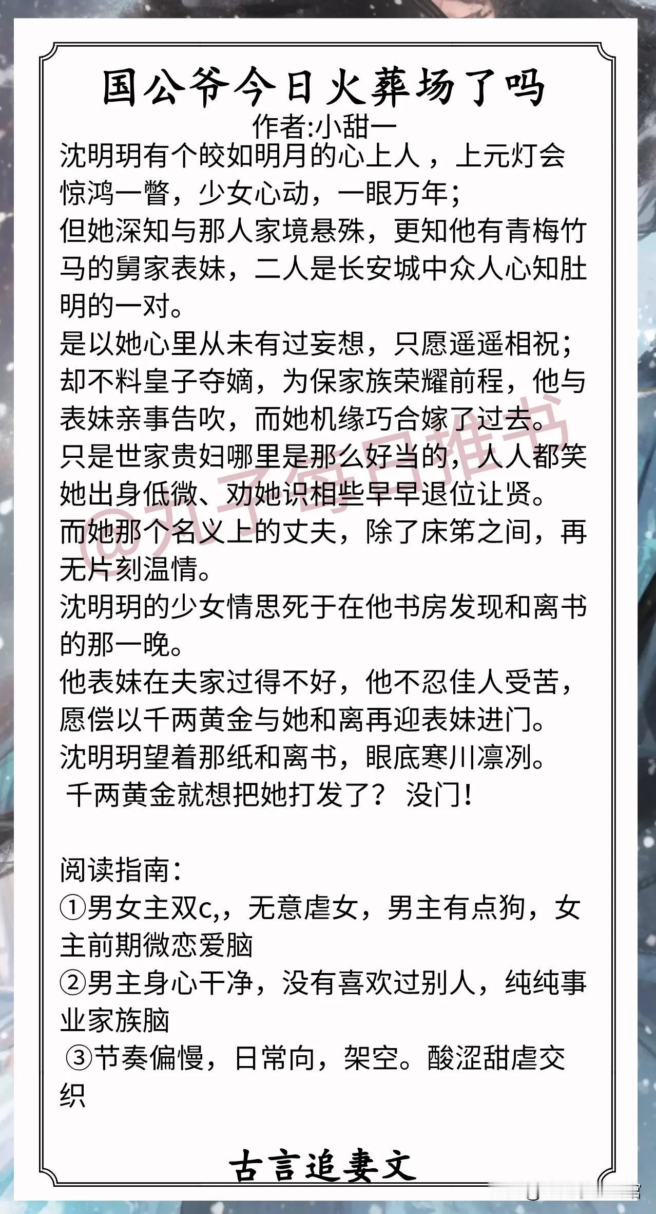 9. 《国公爷今日火葬场了吗》作者:小甜一(小官之女vs年前国公爷,先婚后爱,追妻现场)小说 推文