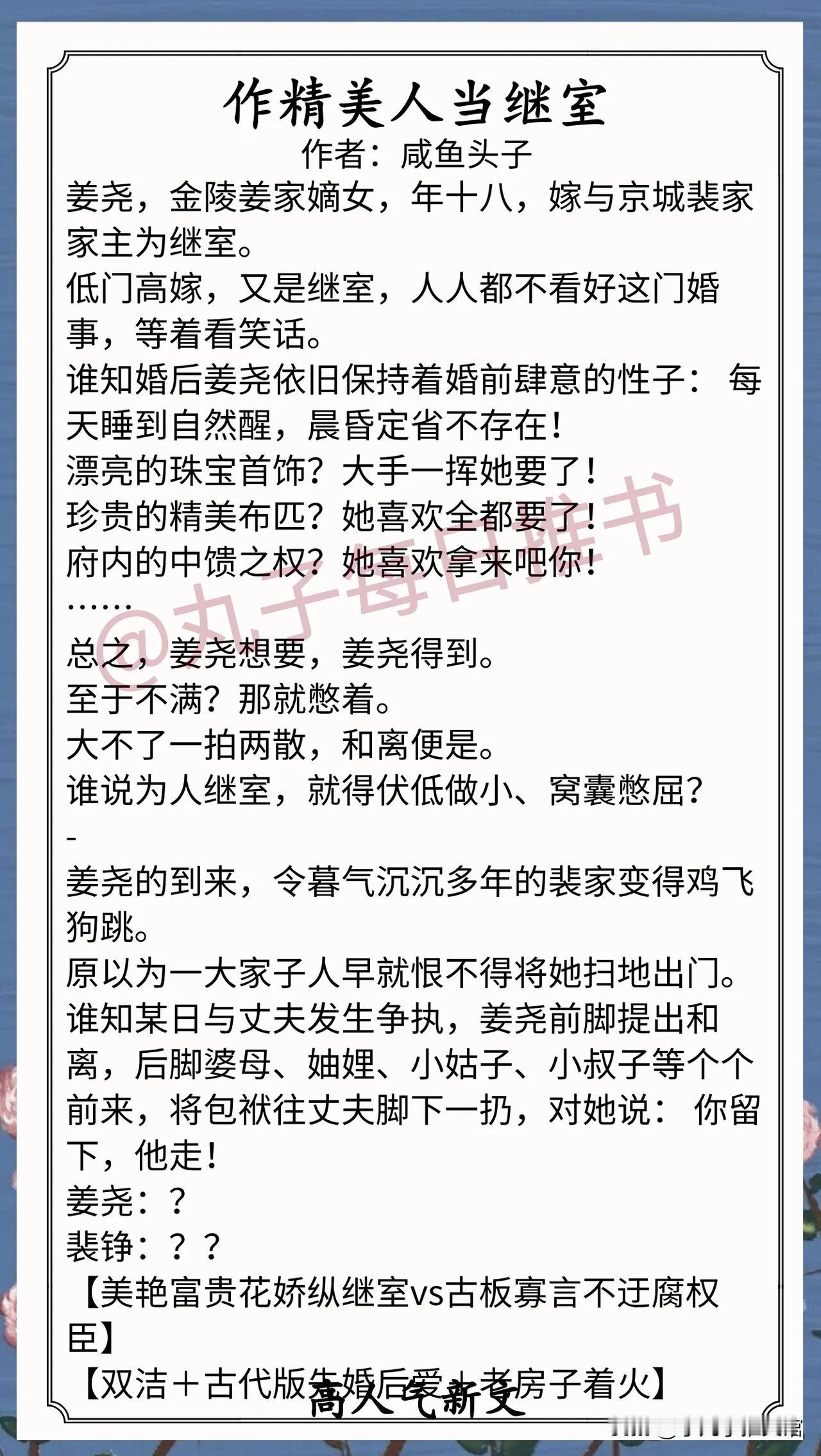 3. 《作精美人当继室》作者:咸鱼头子(美艳富贵花娇纵继室vs古板寡言不迂腐权臣,先婚后爱,老房子着火,年龄差)