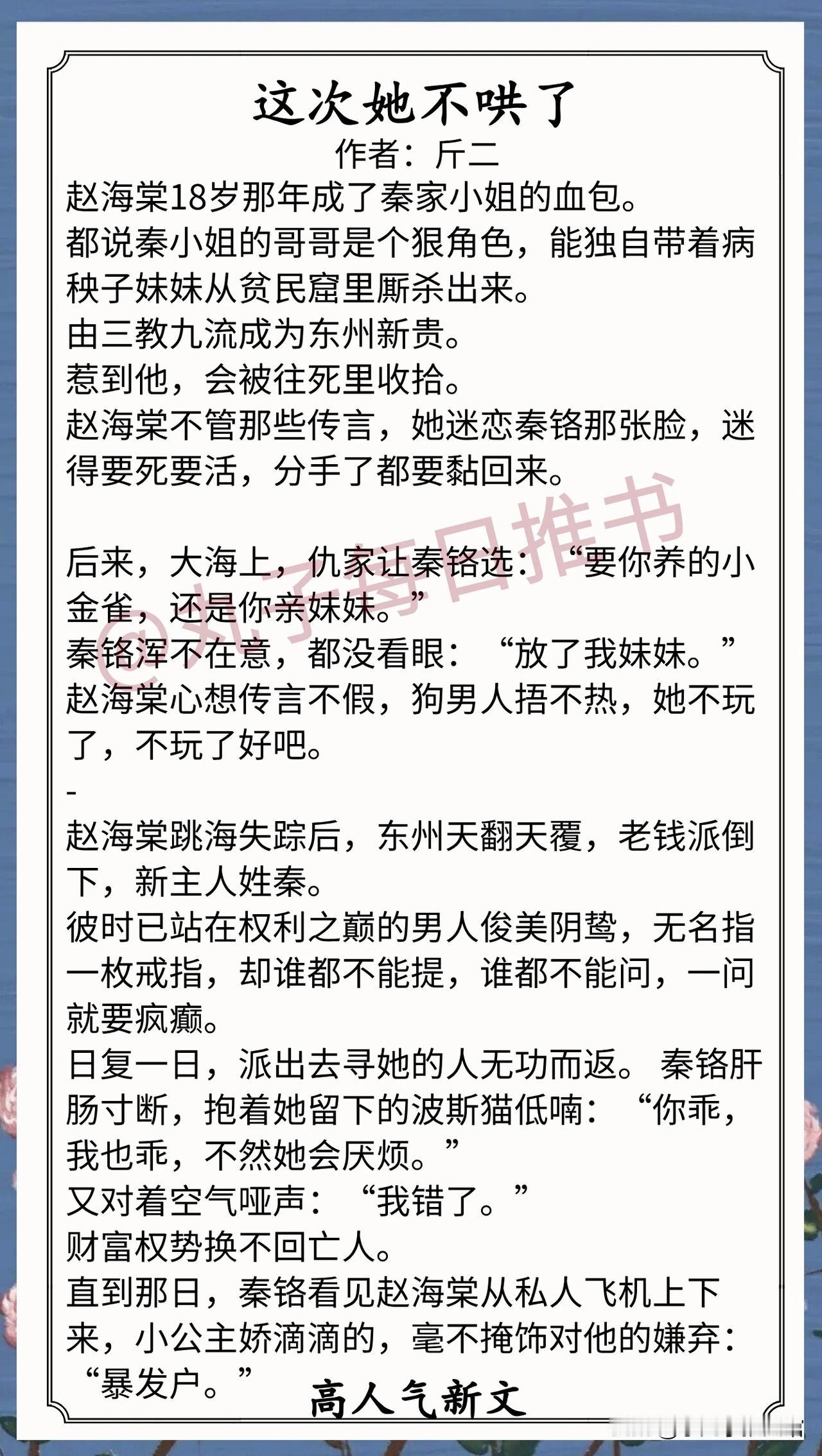 6. 《这次她不哄了》作者:斤二(娇气包vs糙汉子 ,死遁,火葬场)