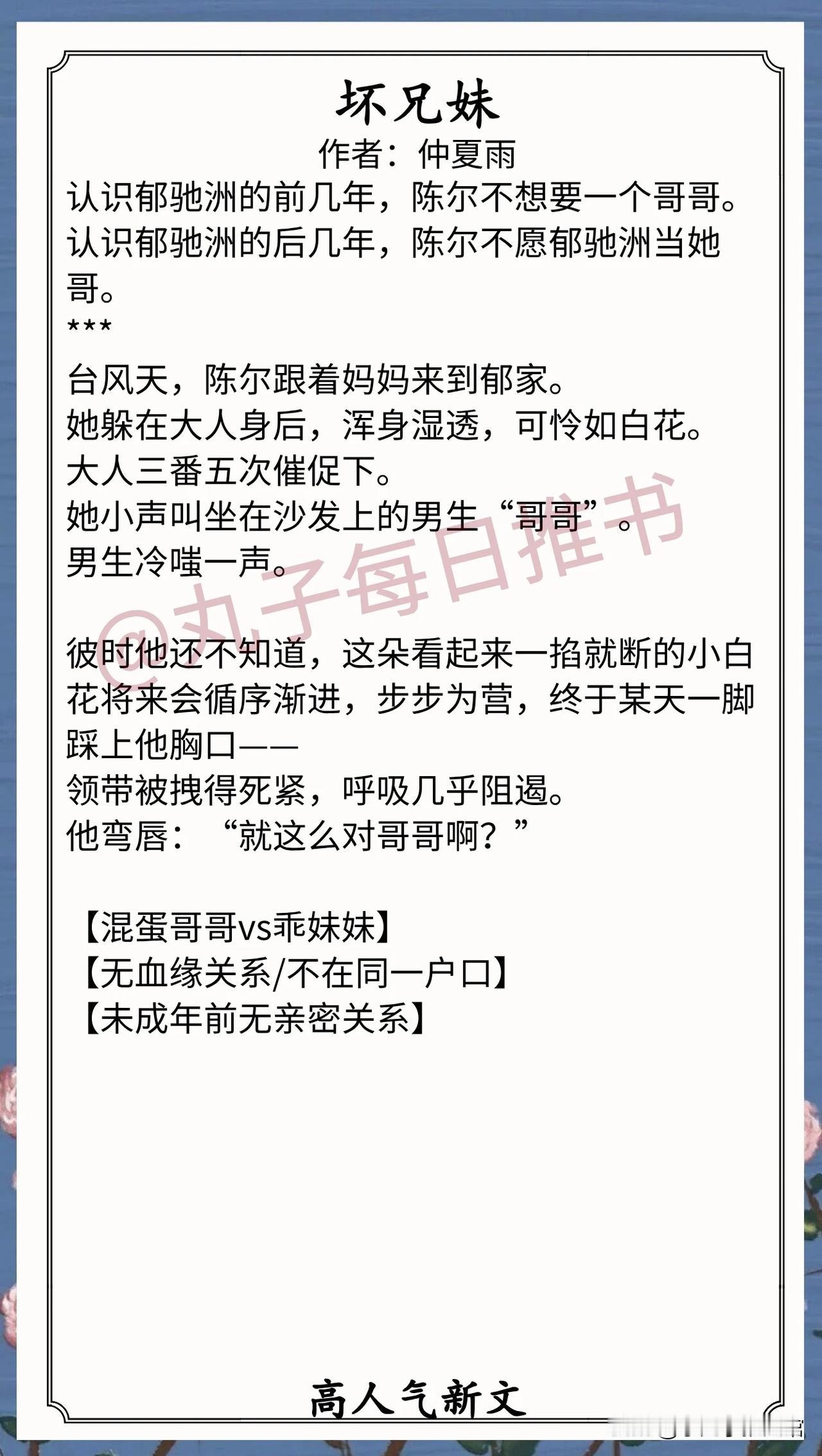 4. 《坏兄妹》作者:仲夏雨(乖妹妹vs混蛋哥哥,伪骨科,打脸真香)