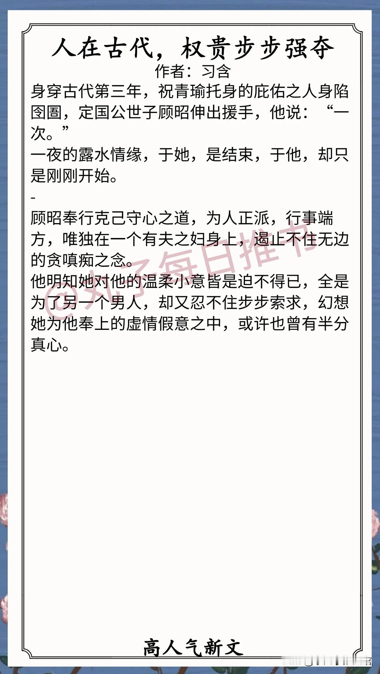 7. 《人在古代,权贵步步强夺》作者:习含(心机聪慧美人vs温和又强势权臣,穿越,巧取豪夺)