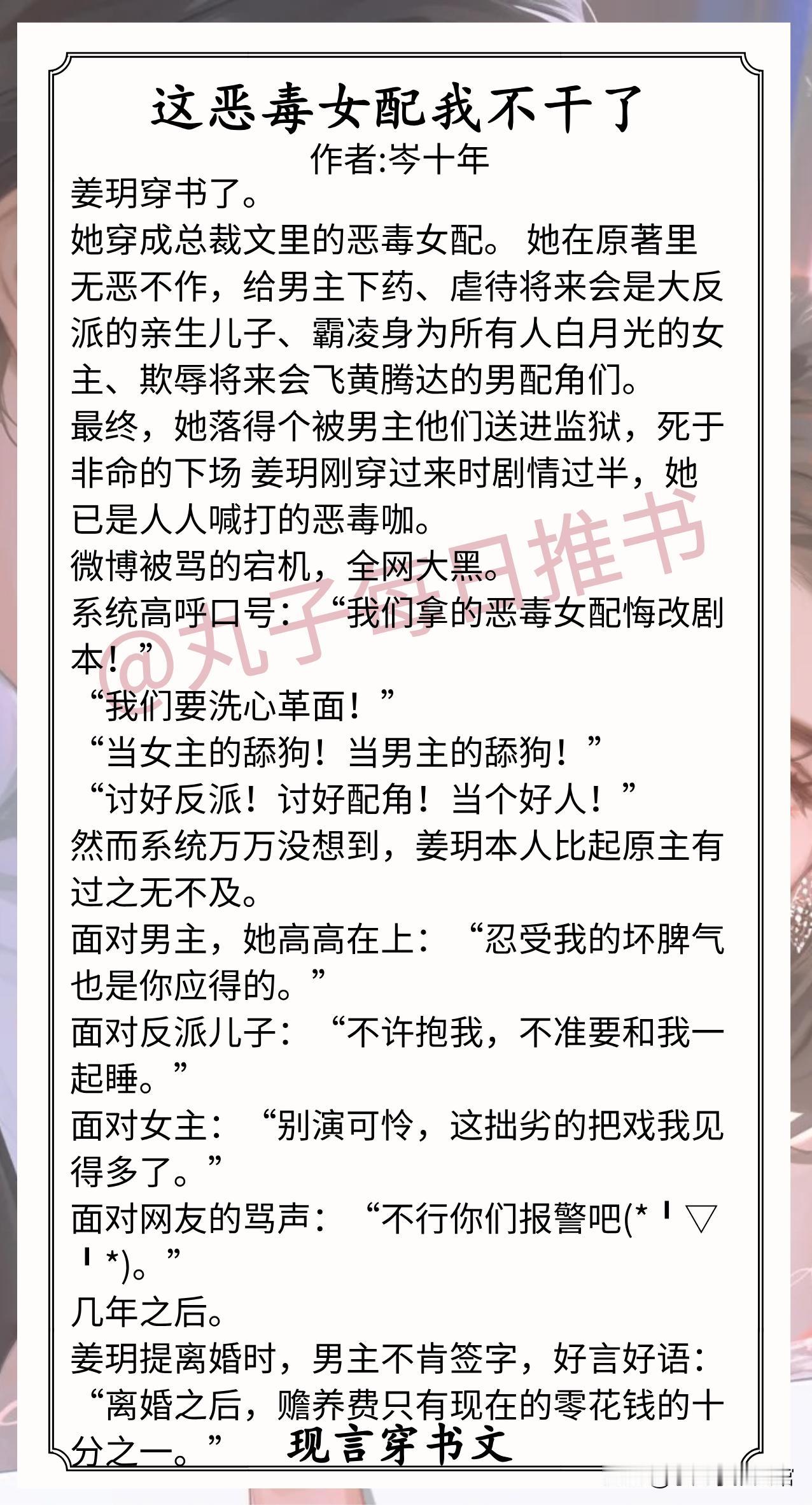 2.《这恶毒女配我不干了》作者:岑十年(绝不受气傲慢小公主vs逐渐恋爱脑大总裁,古穿今,先婚后爱,打脸全员,前世今生,爆笑甜爽风)