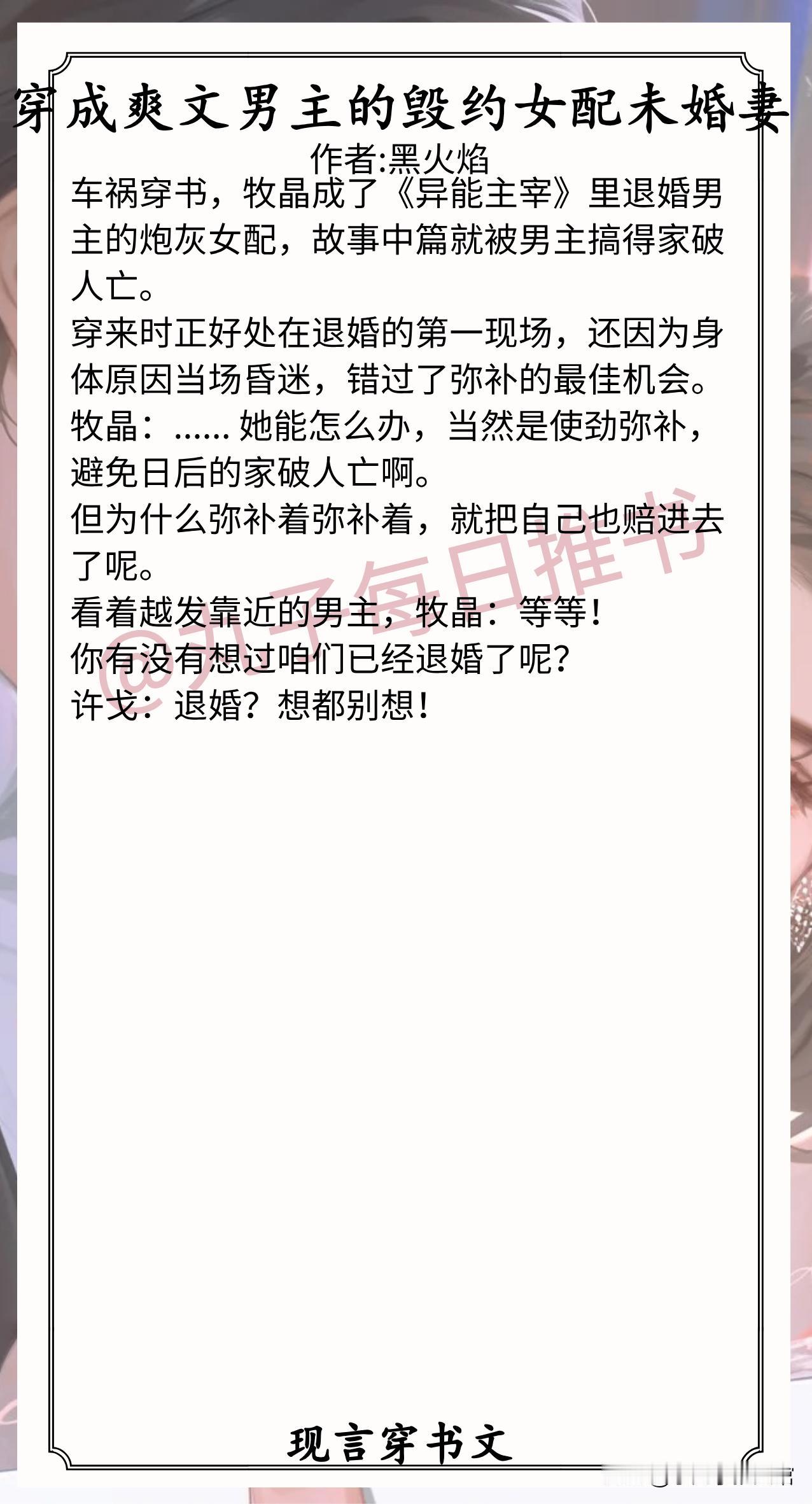 4.《穿成爽文男主的毁约女配未婚妻》作者:黑火焰(怂包女主vs未来大佬,穿书,抱大腿,现言甜宠文)
