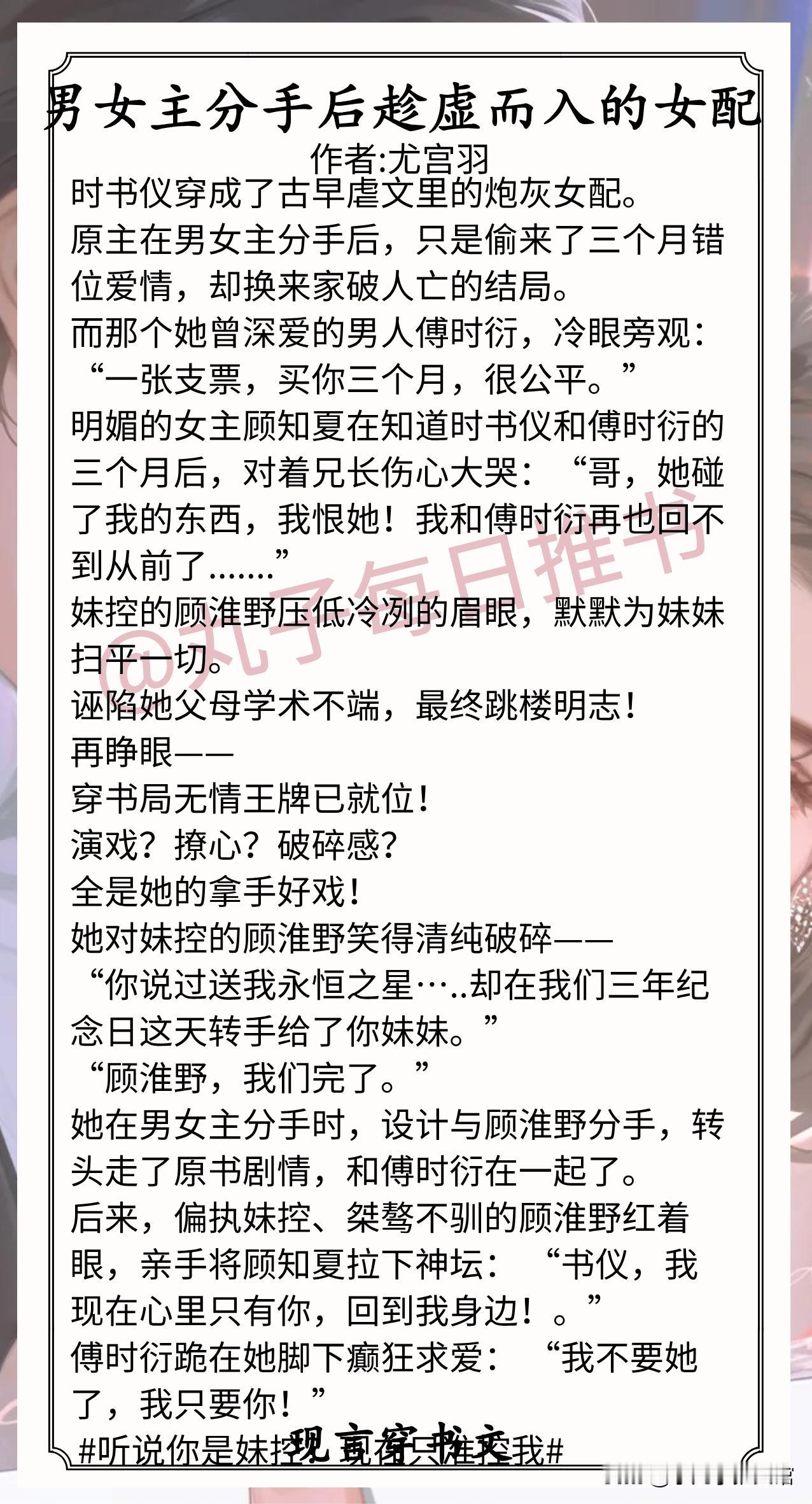 8.《穿成男女主分手后趁虚而入的女配》作者:尤宫羽(飒爽牛逼黑莲花,穿书,女配复仇,阶段性1v1,反杀之路,全员火葬场,成年人的爱恨情仇)