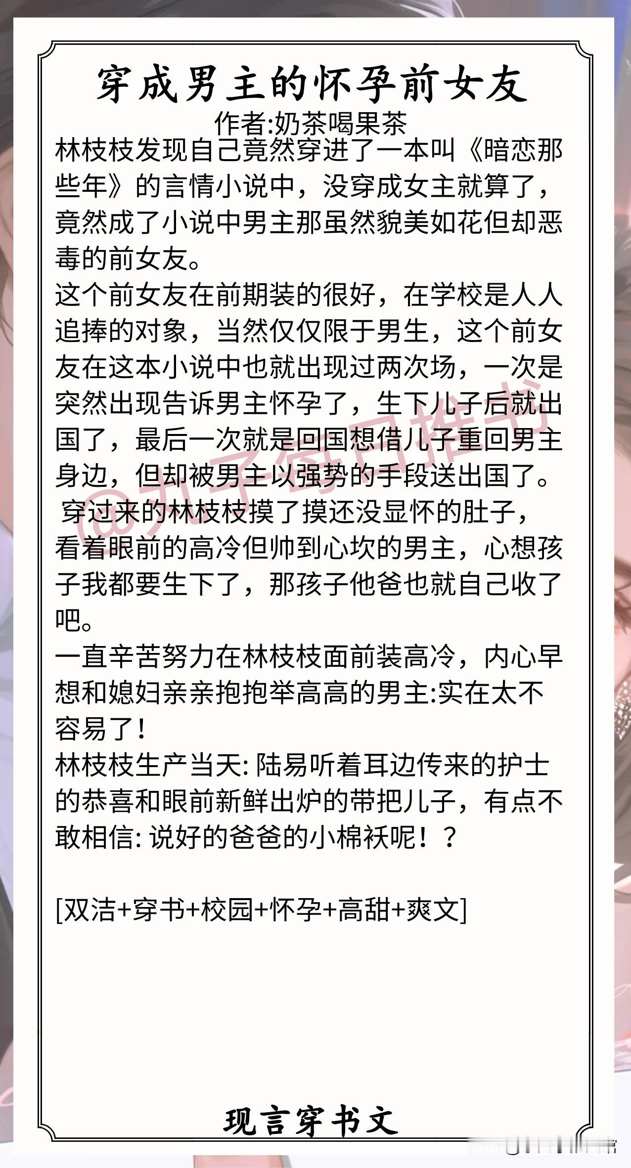 3.《穿成男主的怀孕前女友》作者:奶茶喝果茶(娇气美人vs恋爱脑男神,穿书,怀孕,高甜校园文)