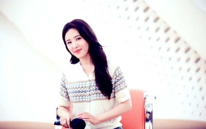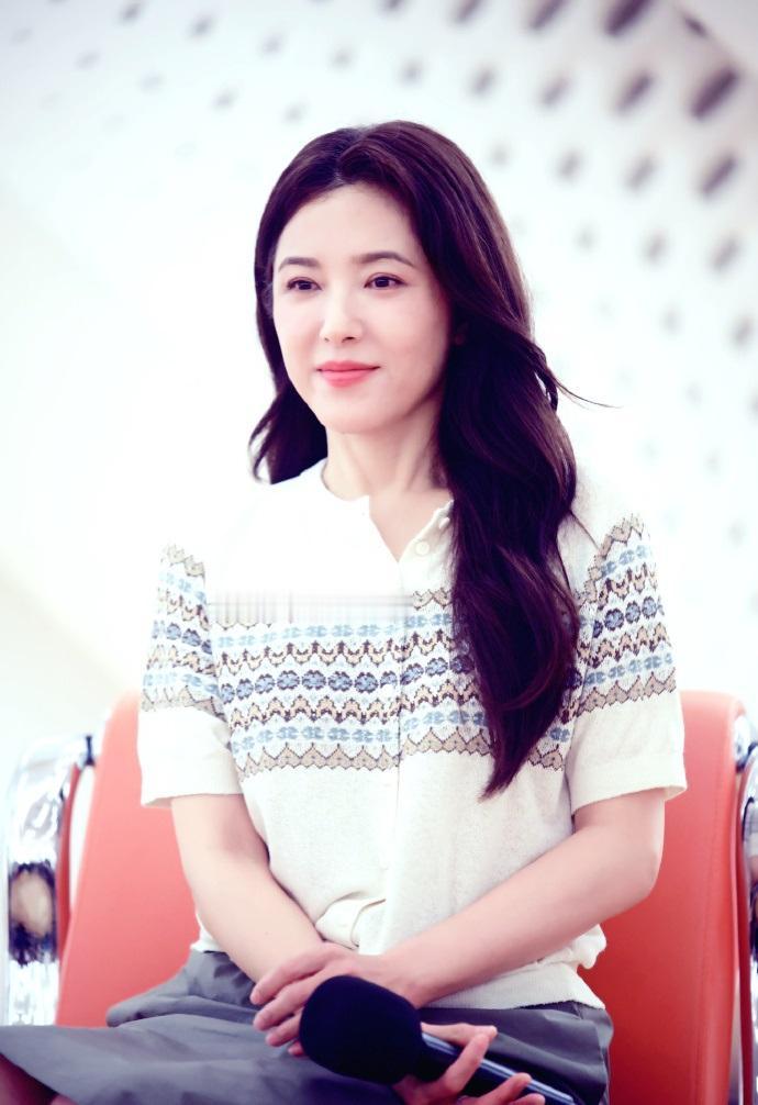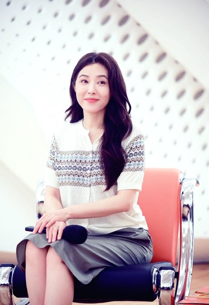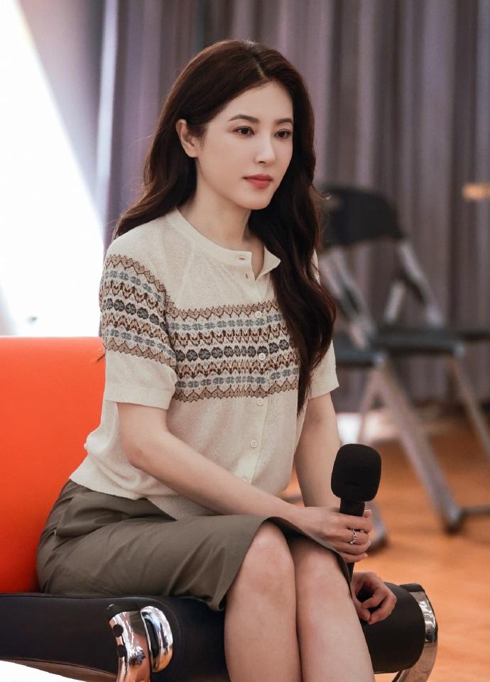 曾黎的身材保持的很好,即使坐着也不臃肿,还超有知性之美。