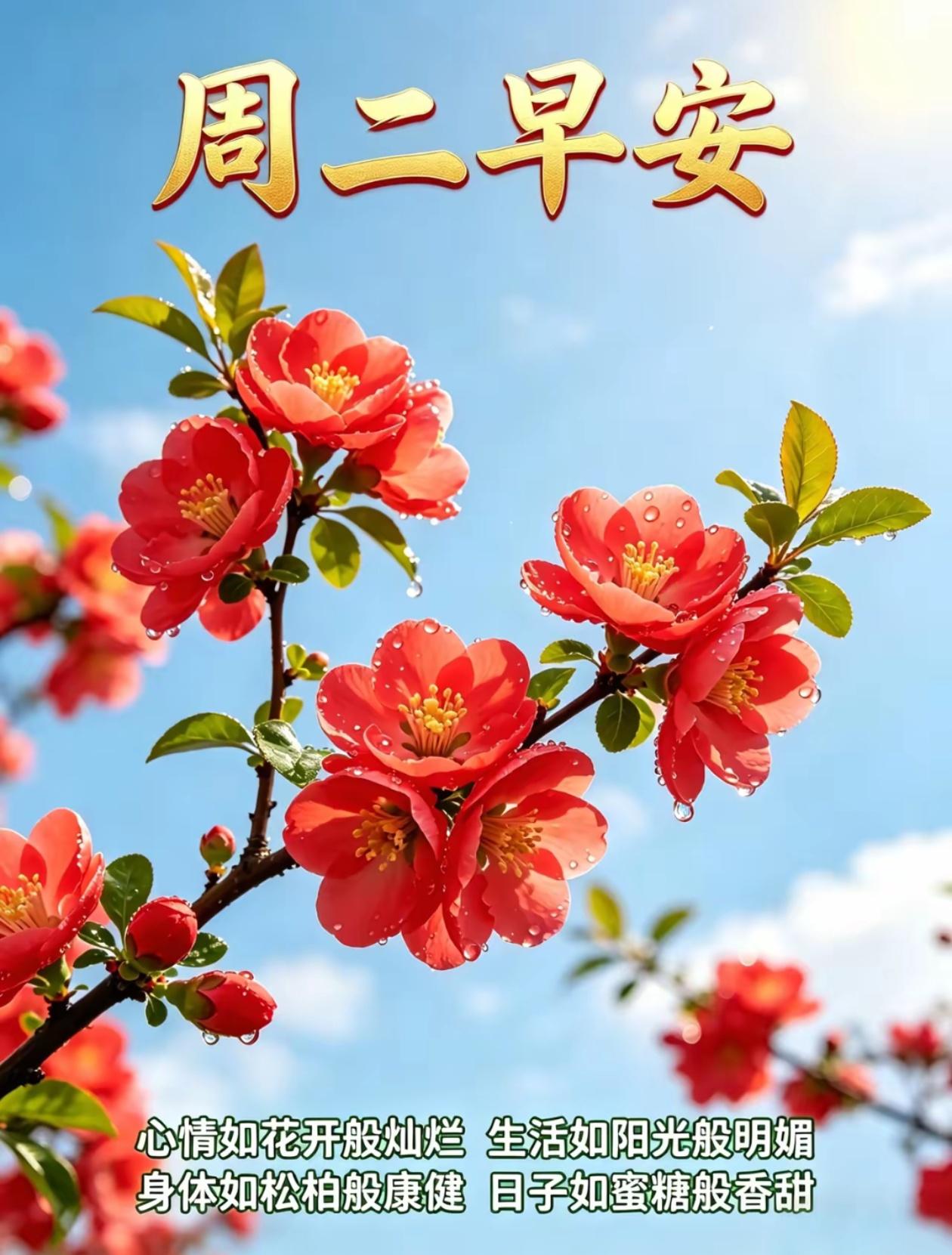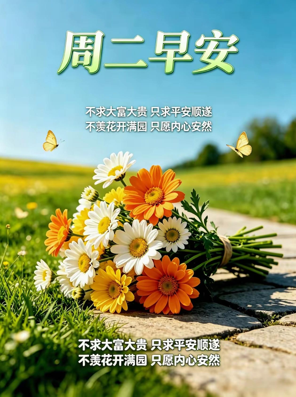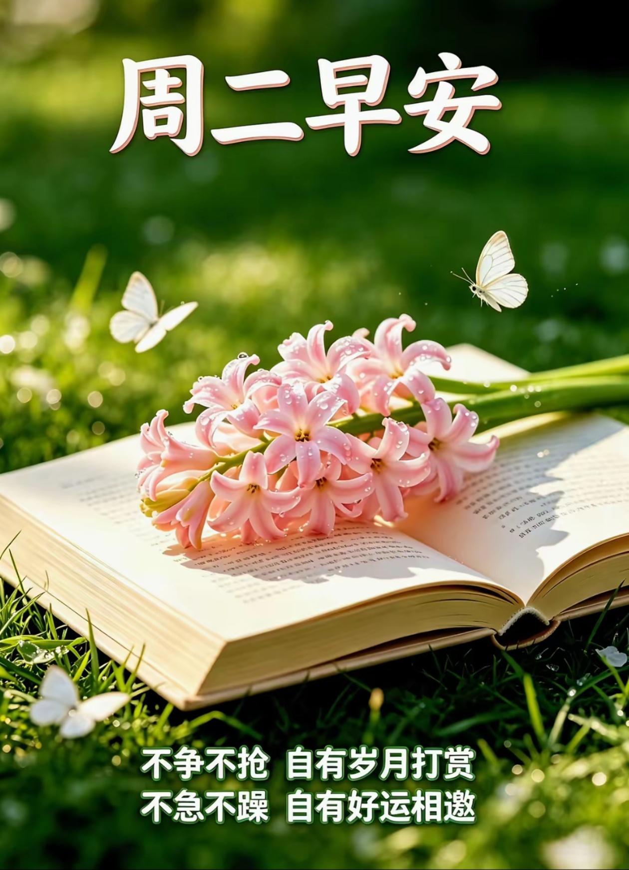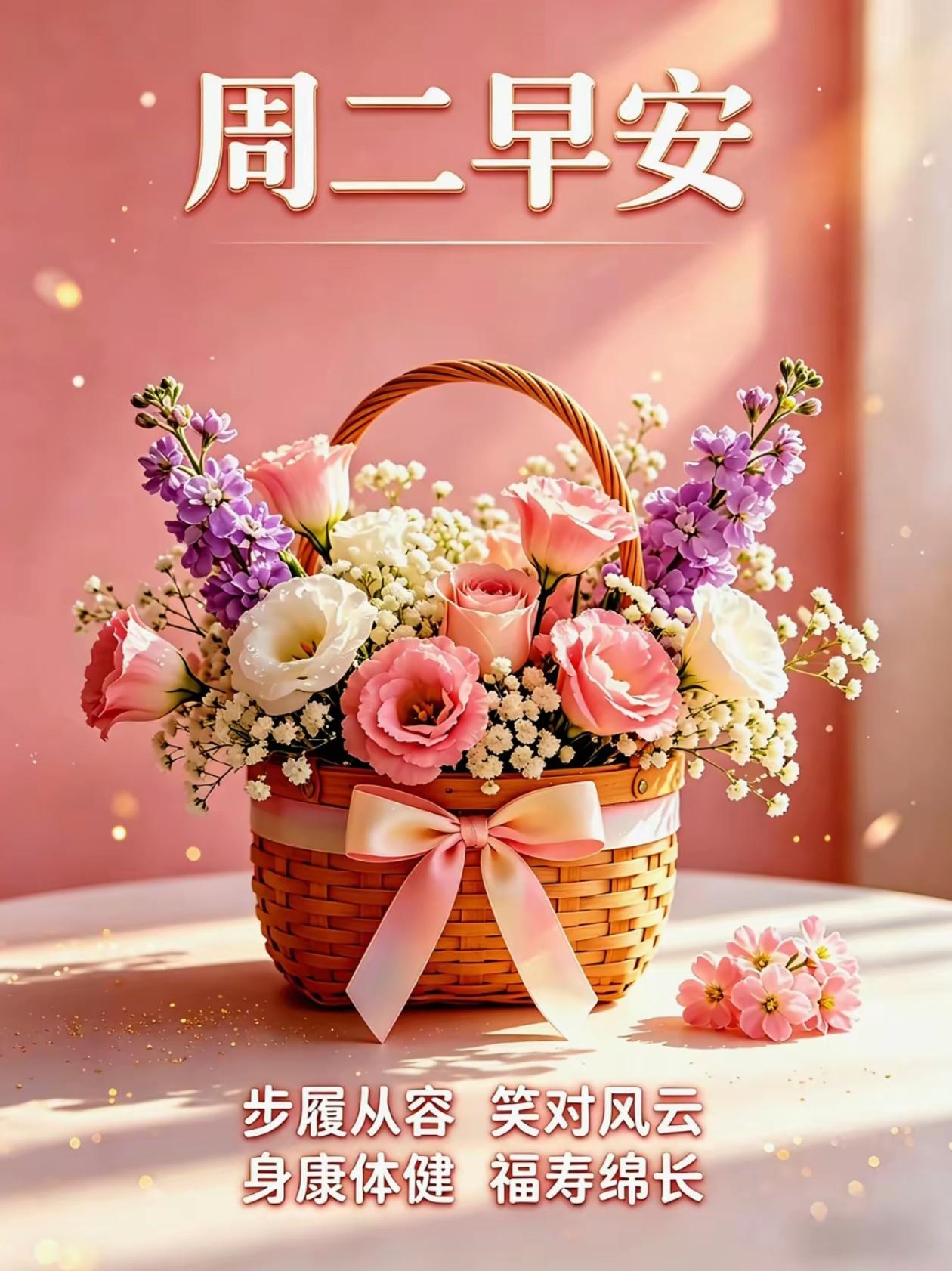 🌿🌷周二新晨启程,寄上满心关怀与美好祝福。愿流年无恙,时光清浅,护你岁岁安康,事事顺心。生活自有温柔,人生常伴暖意,携一缕晨光,守一份从容,让福气萦绕身旁,每一天都平安顺遂。无论山高水长,情谊始终绵长,好运随行,所求皆如愿,所行皆坦途,日子舒心,福运常在。