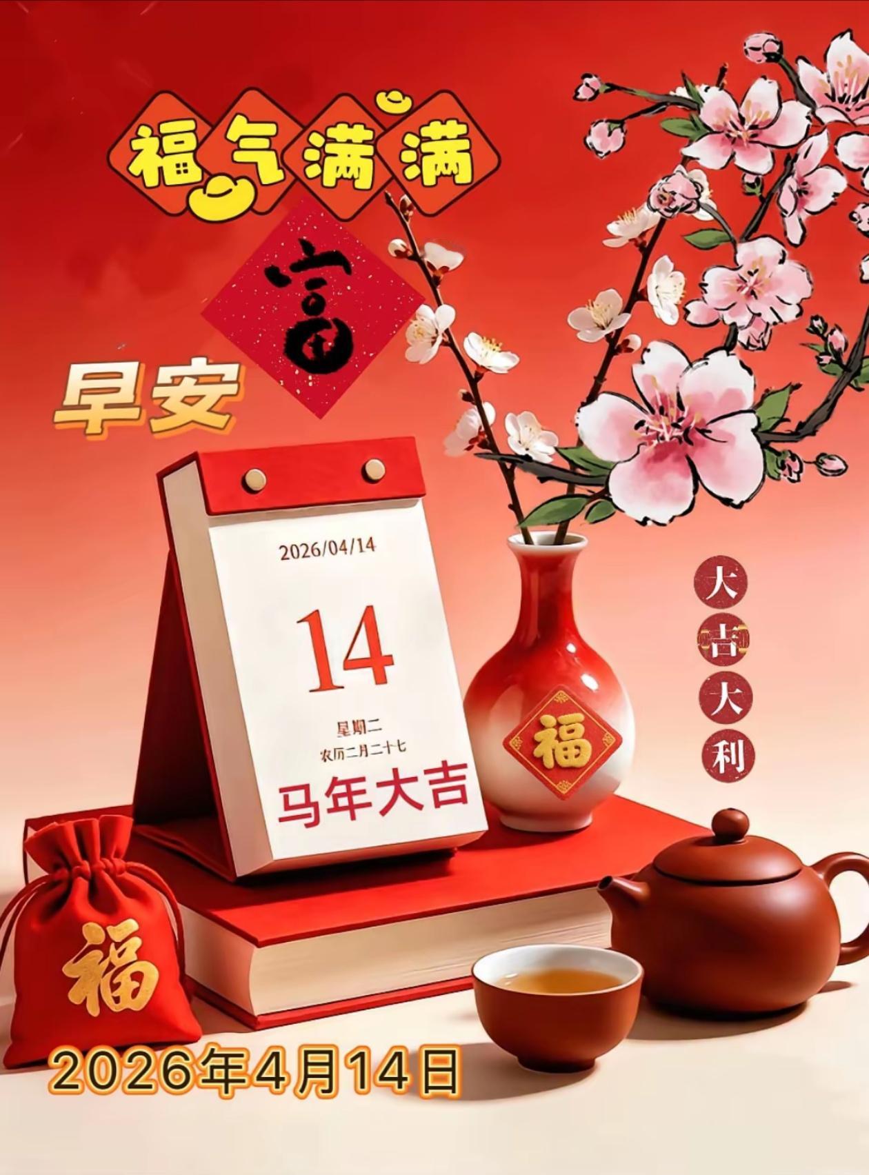 🌺2026./4.14.周二春晨祝福🌺 🌿🌷周二新晨启程,寄上满心关怀