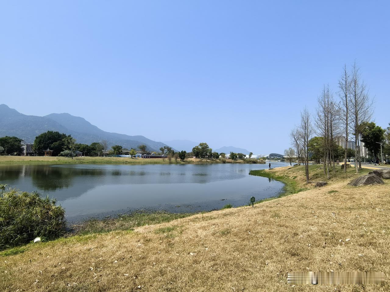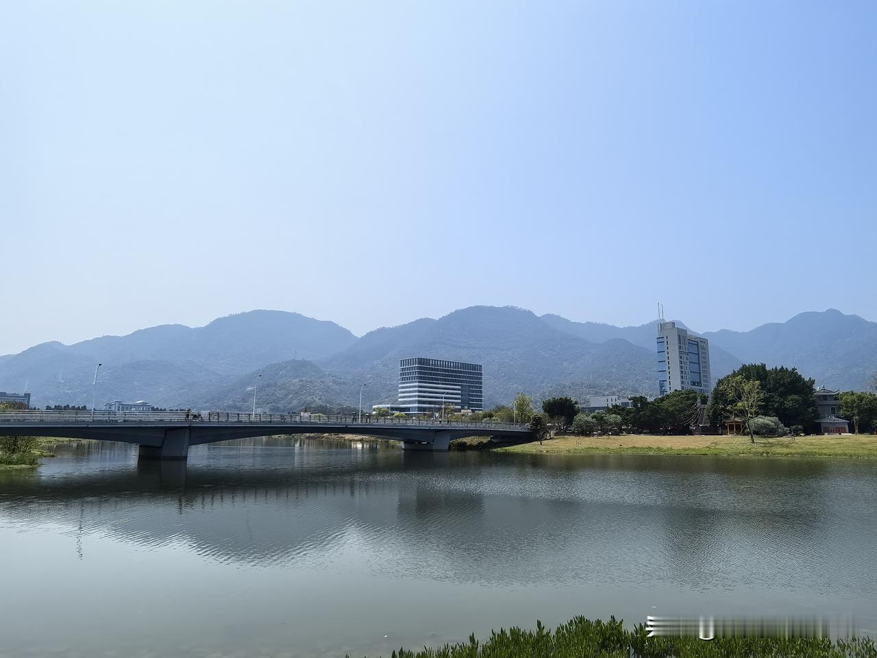 这一方山水胜地,美得令人心醉!天晴时,旗山湖公园的天空湛蓝如洗,远处的旗山隐隐约