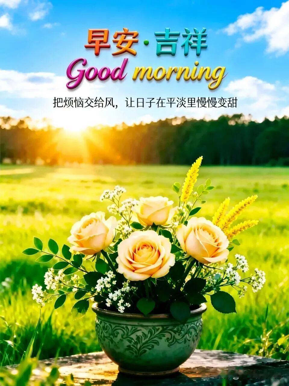 愿清晨的第一缕晨光,为你点亮一整天的明媚心情。愿你事事皆顺意,处处遇温柔,平安常相伴,岁岁皆无忧,所行皆是美好风景。