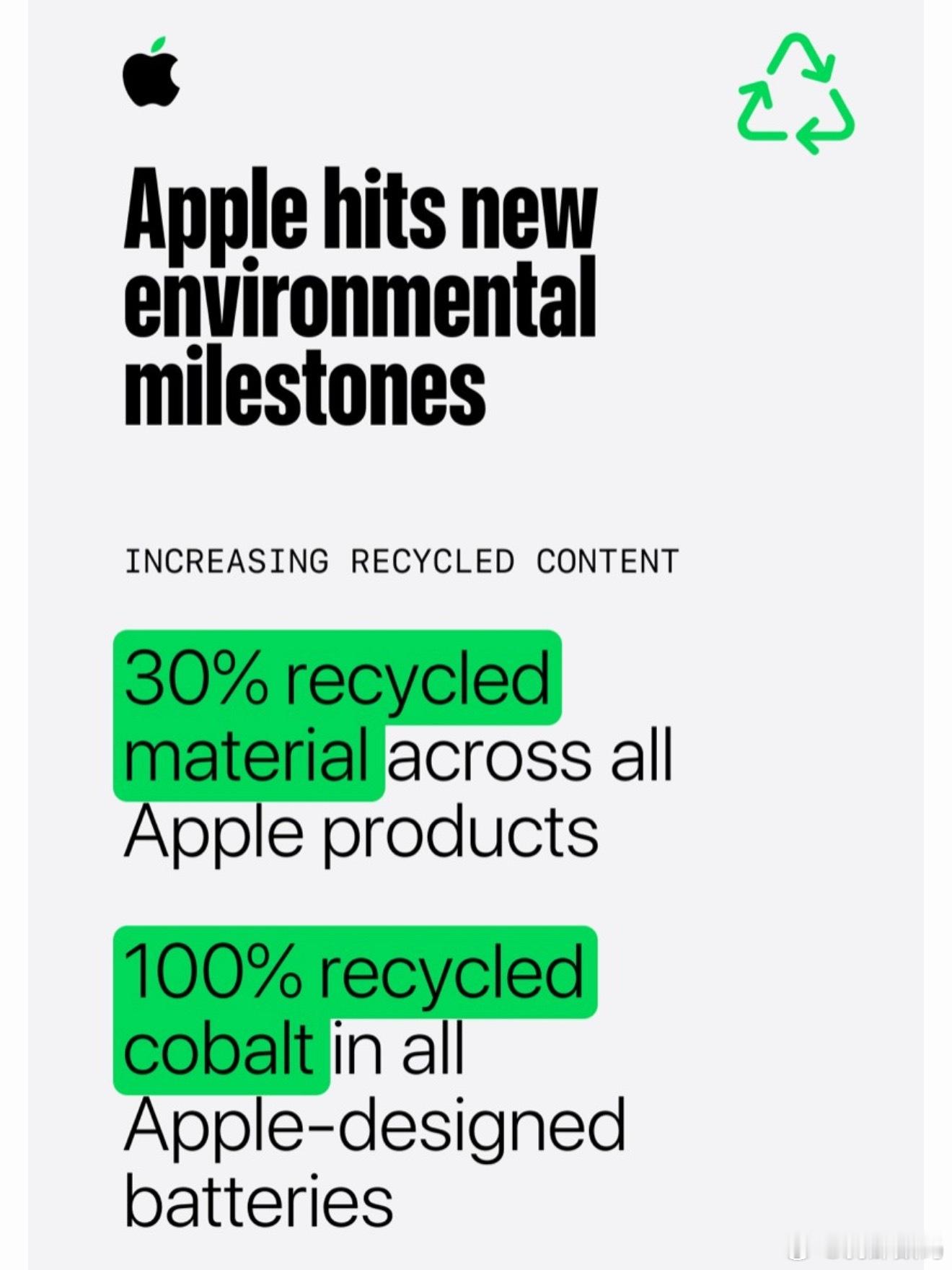 苹果分享了它们在保护地球方面的最新进展回收材料用量创新高:2025年苹果出货的所有产品里,有30%的材料都是回收再利用的。核心零部件“全回收”:苹果自己设计的电池已经做到100%使用回收钴;所有磁体100%使用回收稀土;自家主板上的镀金和焊锡也全部是回收来的。包装盒彻底告别塑料:完成了包装去塑料化的目标,现在全部换成了100%的纸基(纤维)材料。用AI和高科技“收破烂”:上线了全新的 Cora 精密回收流水线,还开发了一个叫 A.R.I.S. 的机器学习系统,专门用来高效识别和分类电子垃圾。最环保的 MacBook Neo:MacBook Neo整机用了60%的回收材料,它的外壳上色工艺也做了改造,能循环利用70%的水,大幅减少了水资源浪费。整体减排成绩单:温室气体排放量相比2015年已经降低了60%以上。
