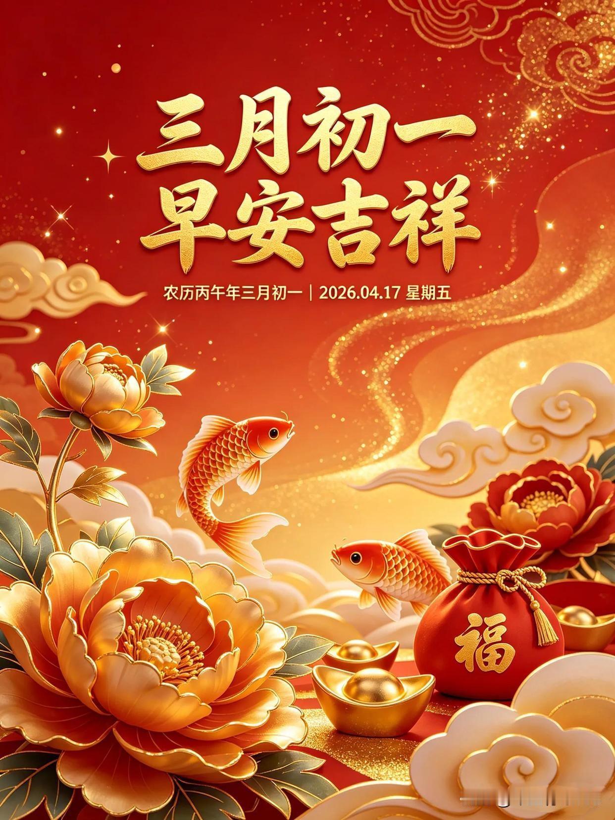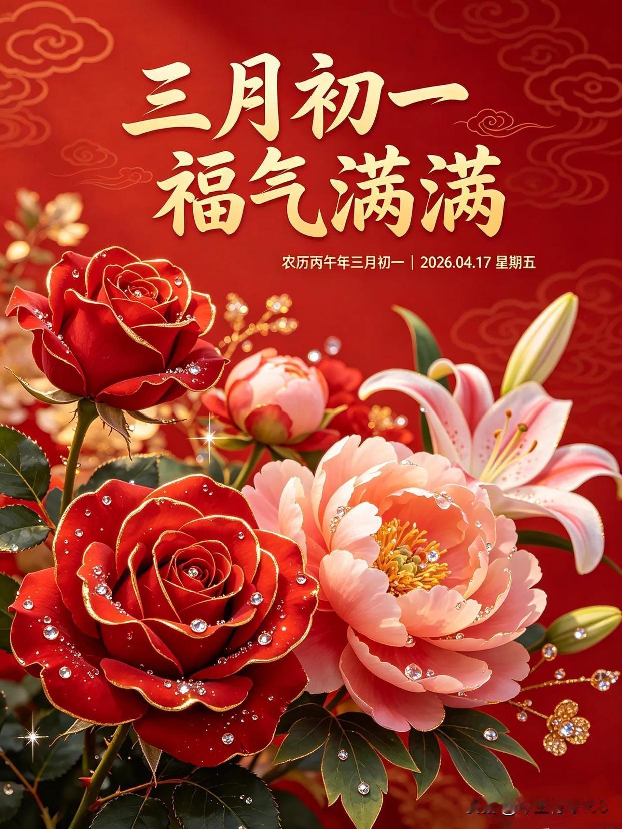 今天周五,农历三月初一。愿你迎着清晨的阳光,开启全新的一天。精神满满,笑意盈盈,用心生活,稳步前行。工作认真努力,生活自在舒心,把简单的日常,活成心中最美的模样。
