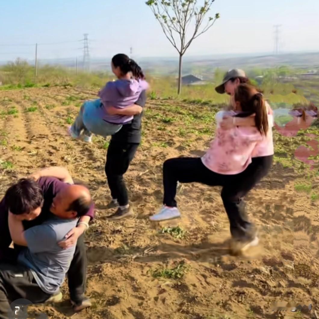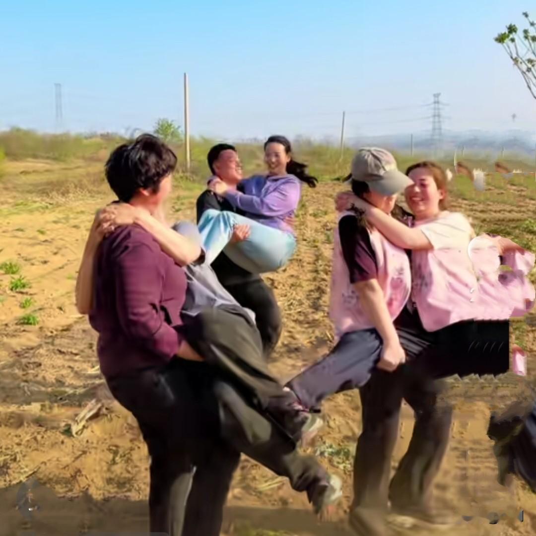 姐妹们真是闲得没事干!都是几十岁的人了,还在野地里肆意撒欢,玩起这小儿科的把戏。