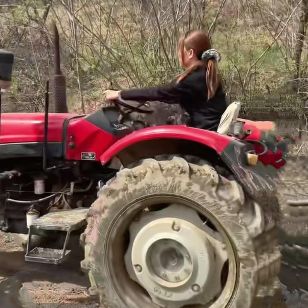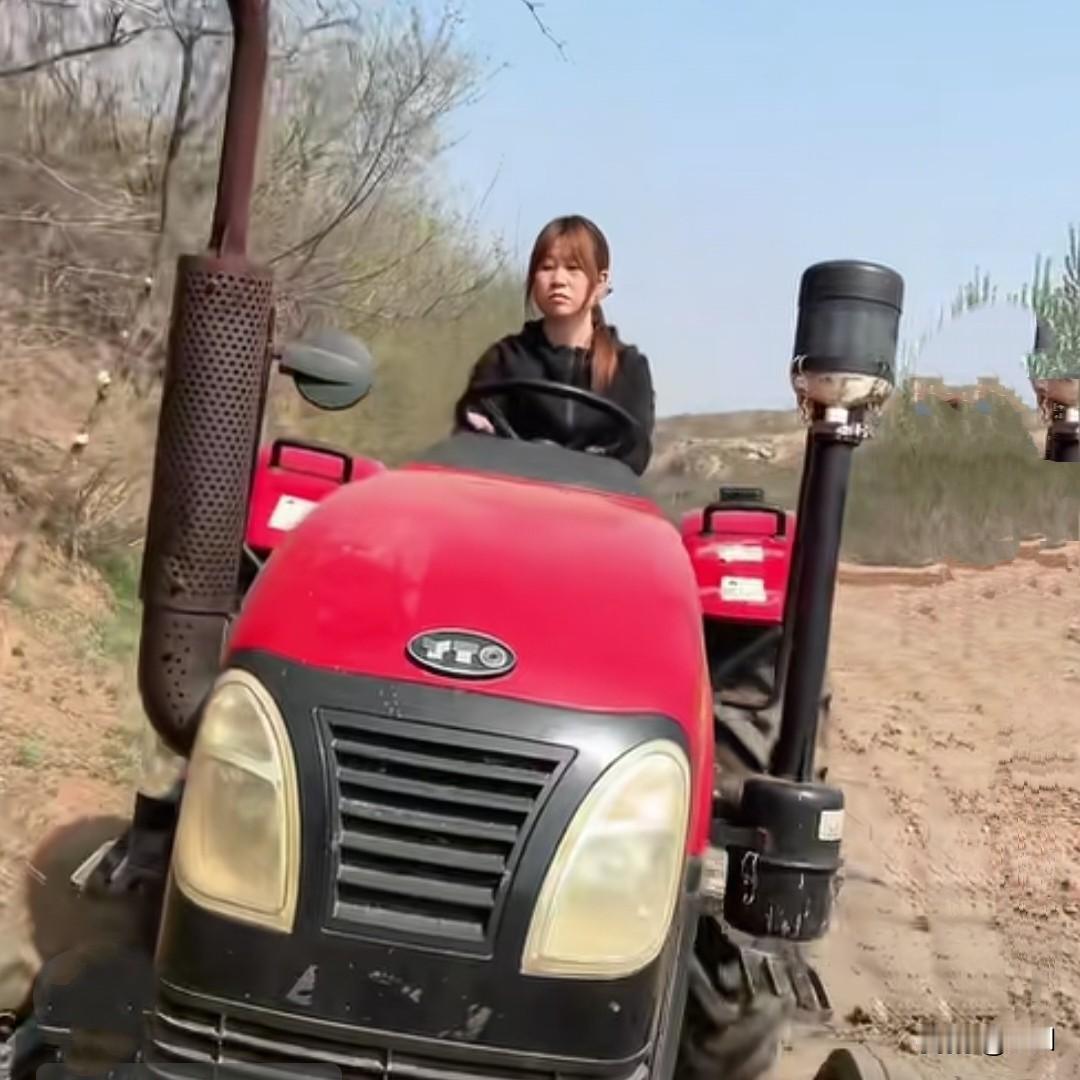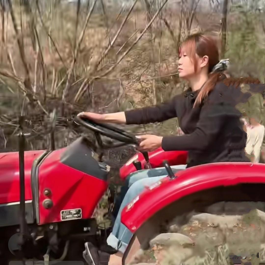 她稳稳当当地坐在拖拉机驾驶座上,双手灵活地把控着方向盘,眼神专注且坚定,动作干脆又利落。