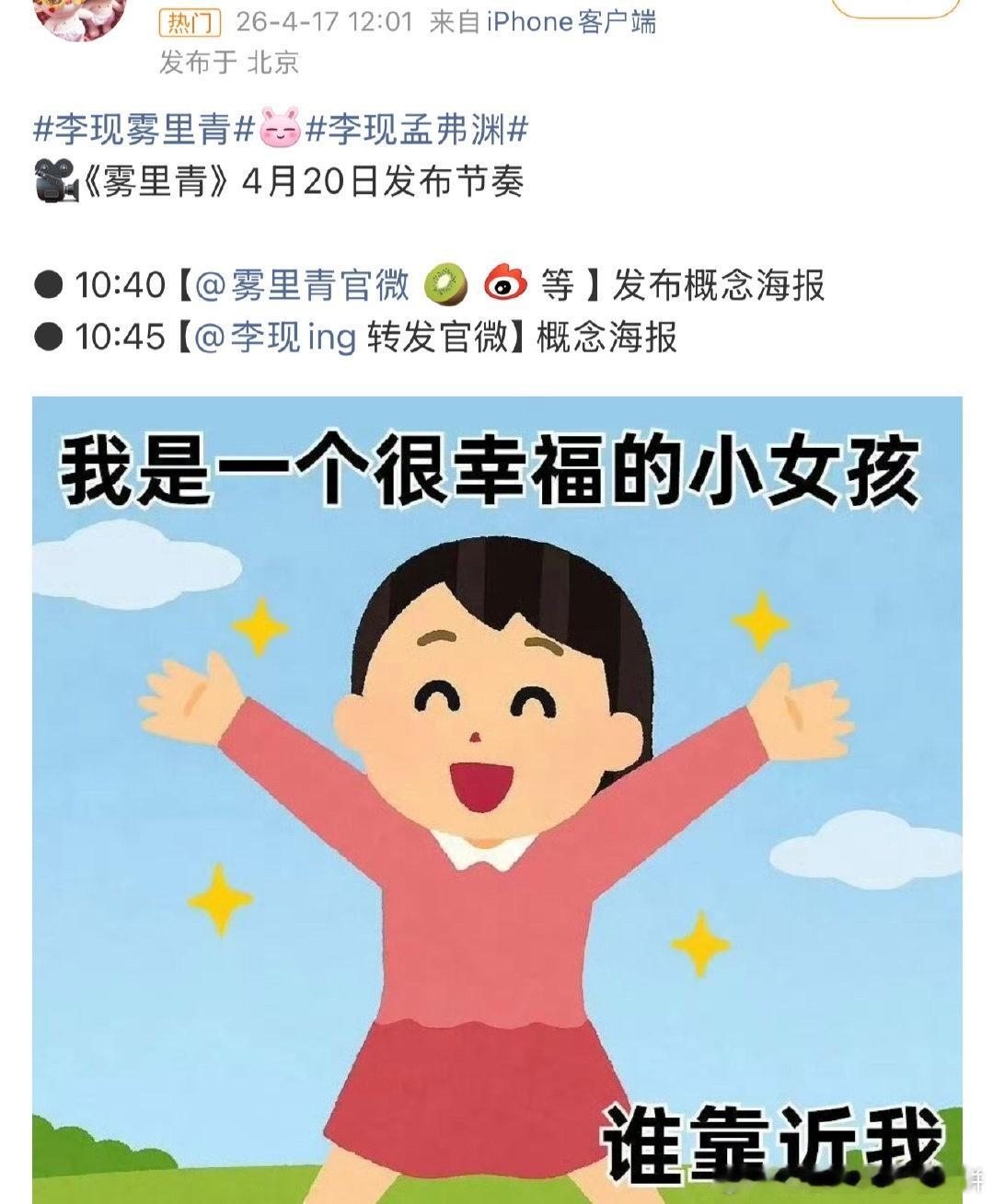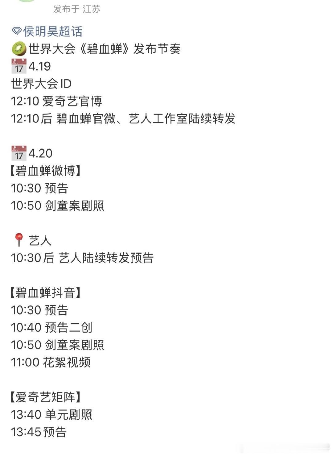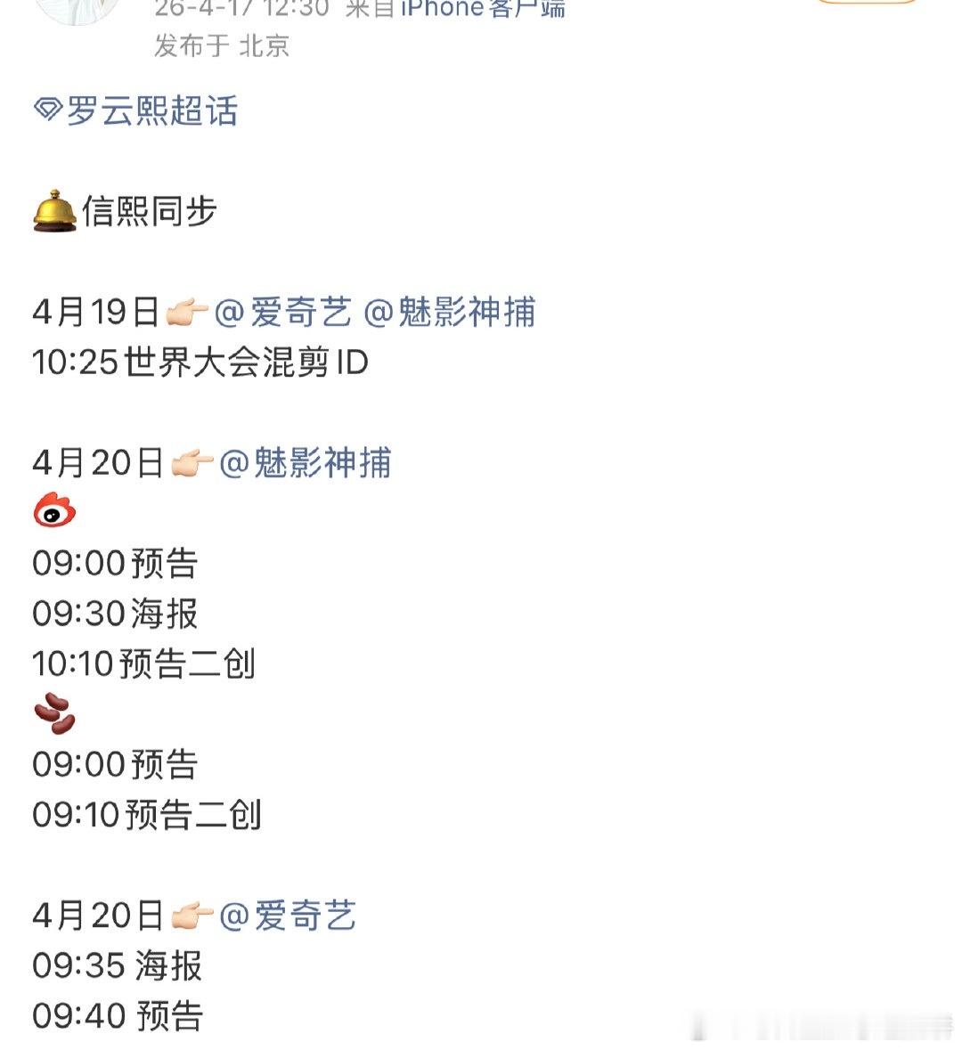 20号爱奇艺悦享会将会发布物料的剧集:李现、李一桐《长风起》罗云熙《魅影神捕》许凯、周也《一瓯春》李现、张婧仪《雾里青》侯明昊、艾米《雀骨》侯明昊《碧血蝉》
