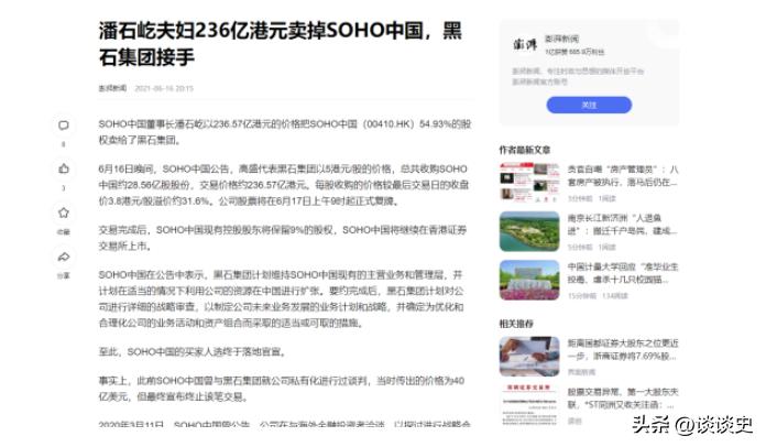 最受关注的是2021年,他带领黑石集团接手潘石屹夫妇的SOHO中国全部资产(据京报网、澎湃新闻报道,交易价236亿港元)。