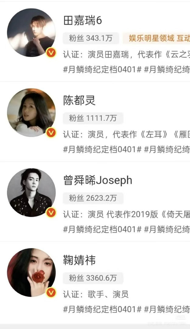 月鳞绮纪主演涨粉月鳞绮纪有效剧播月鳞绮纪有效剧播,月鳞绮纪主演涨粉,鞠婧祎:23w 曾舜晞:7.8w 陈都灵:11.3w 田嘉瑞:18.7w,咱就说好强大的吸粉盘~