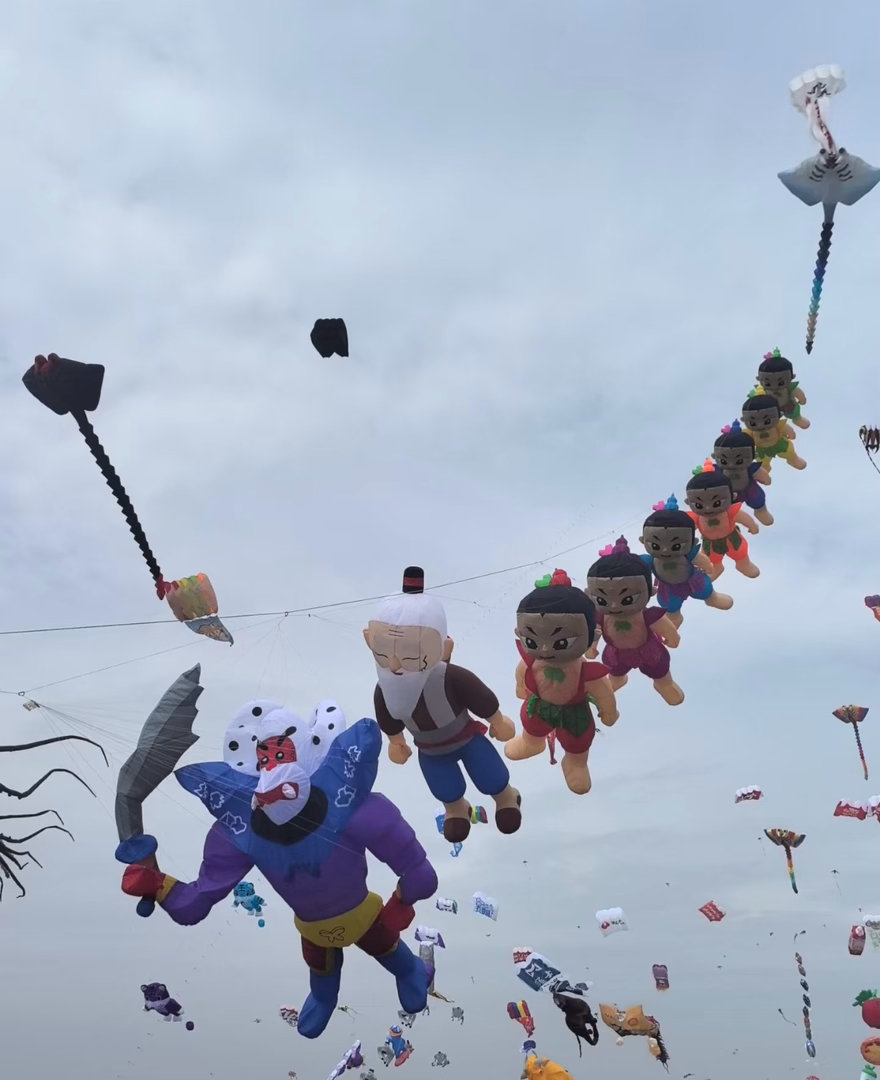 第一次见会搭讪的风筝第一次用社牛评价一个风筝救命!潍坊的风筝也太社牛了吧,不仅集齐了各种形态的风筝,还飘在天上跟人隔空互动,晃来晃去像在疯狂打招呼,天生的社交天赋啊