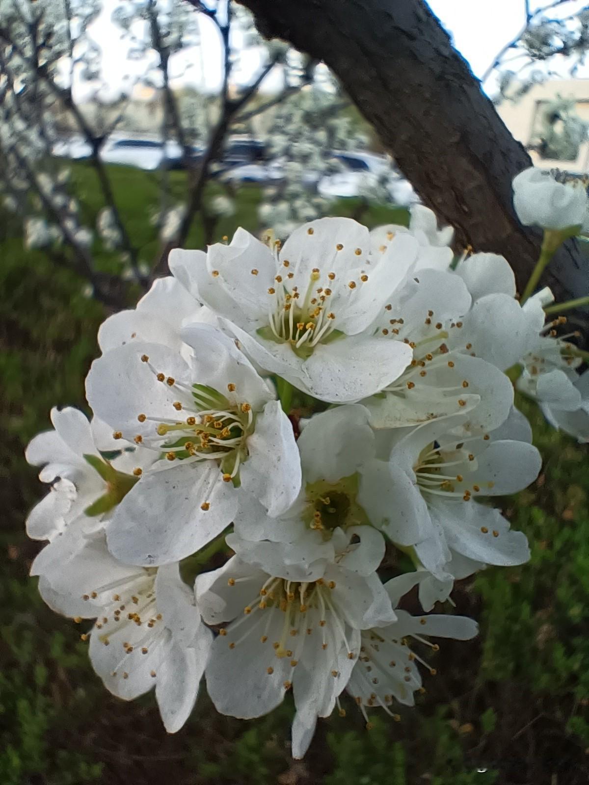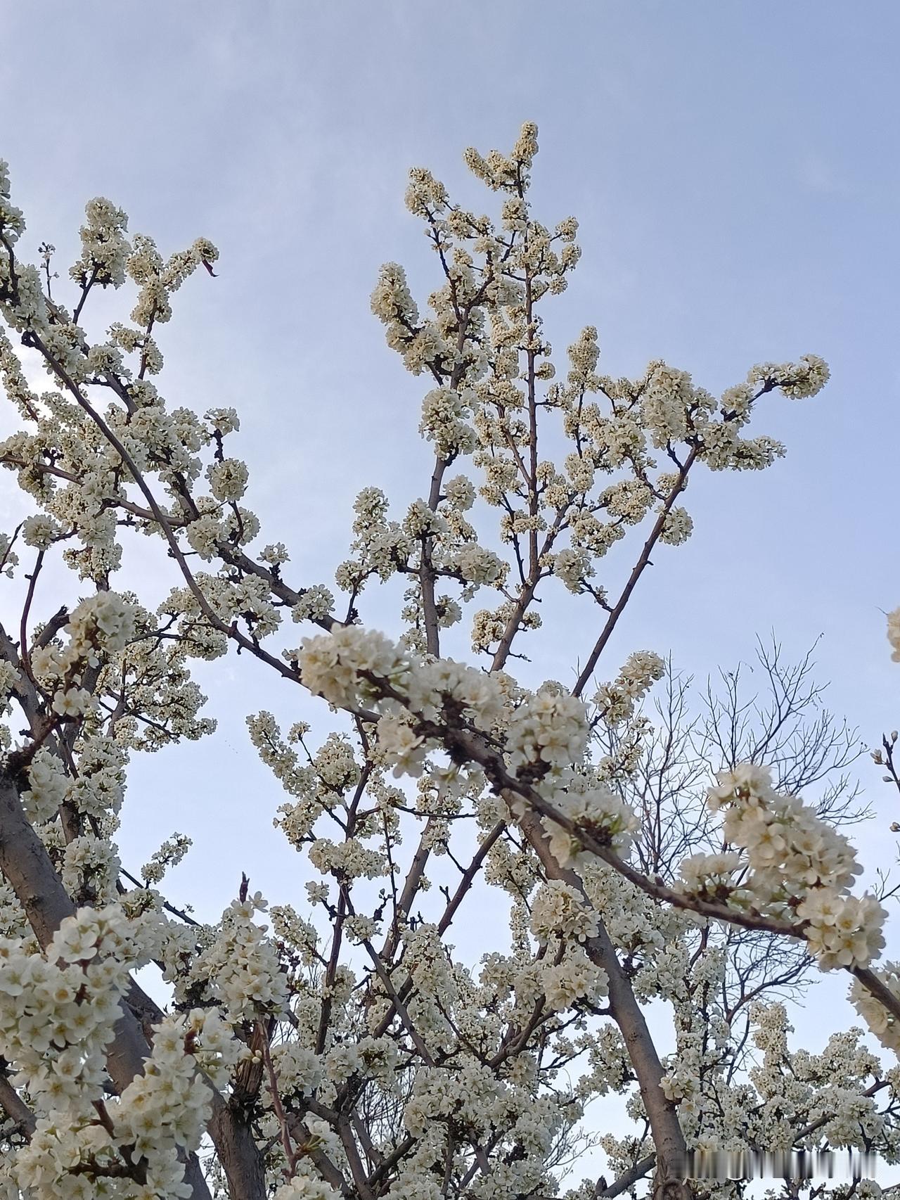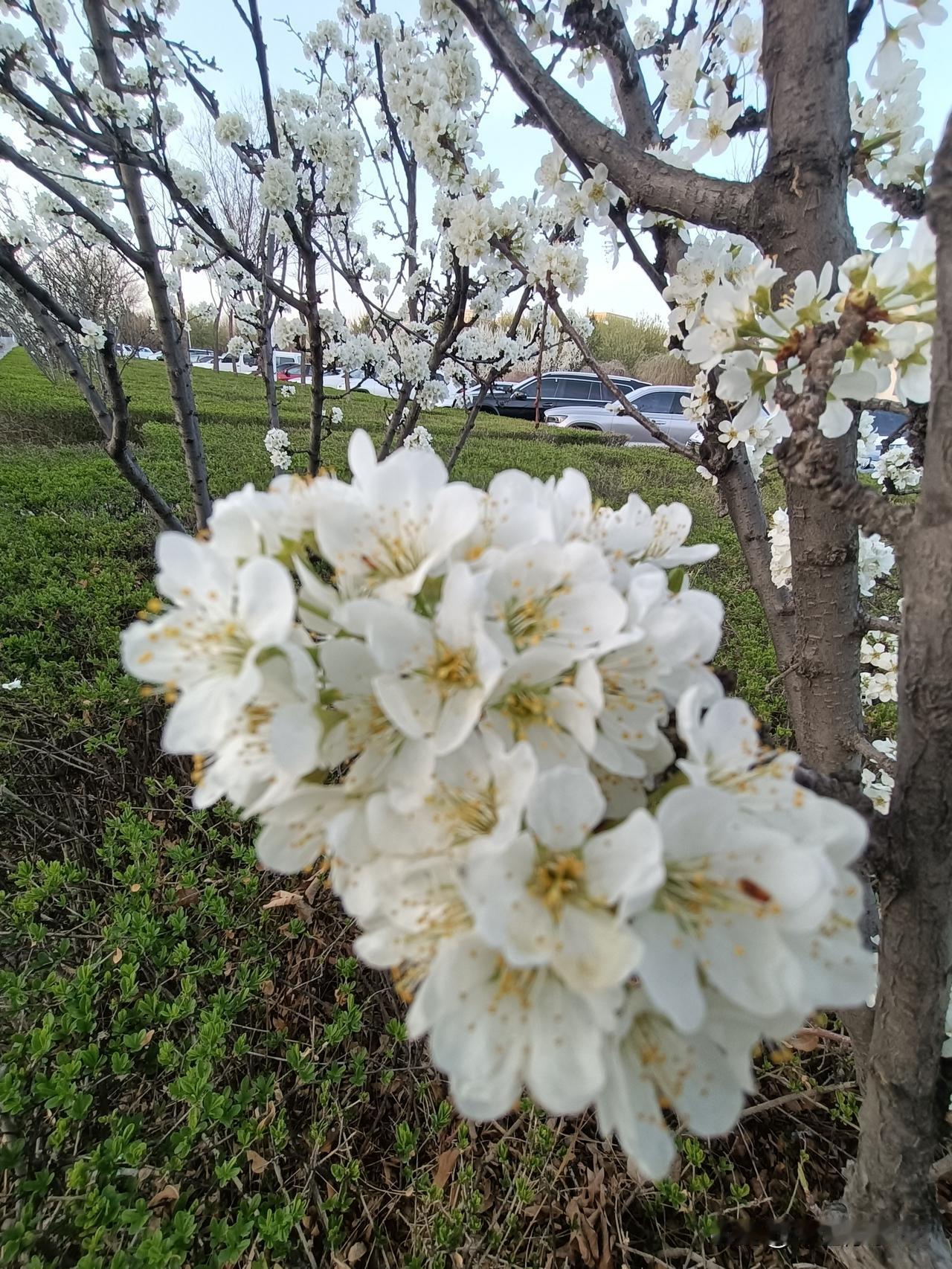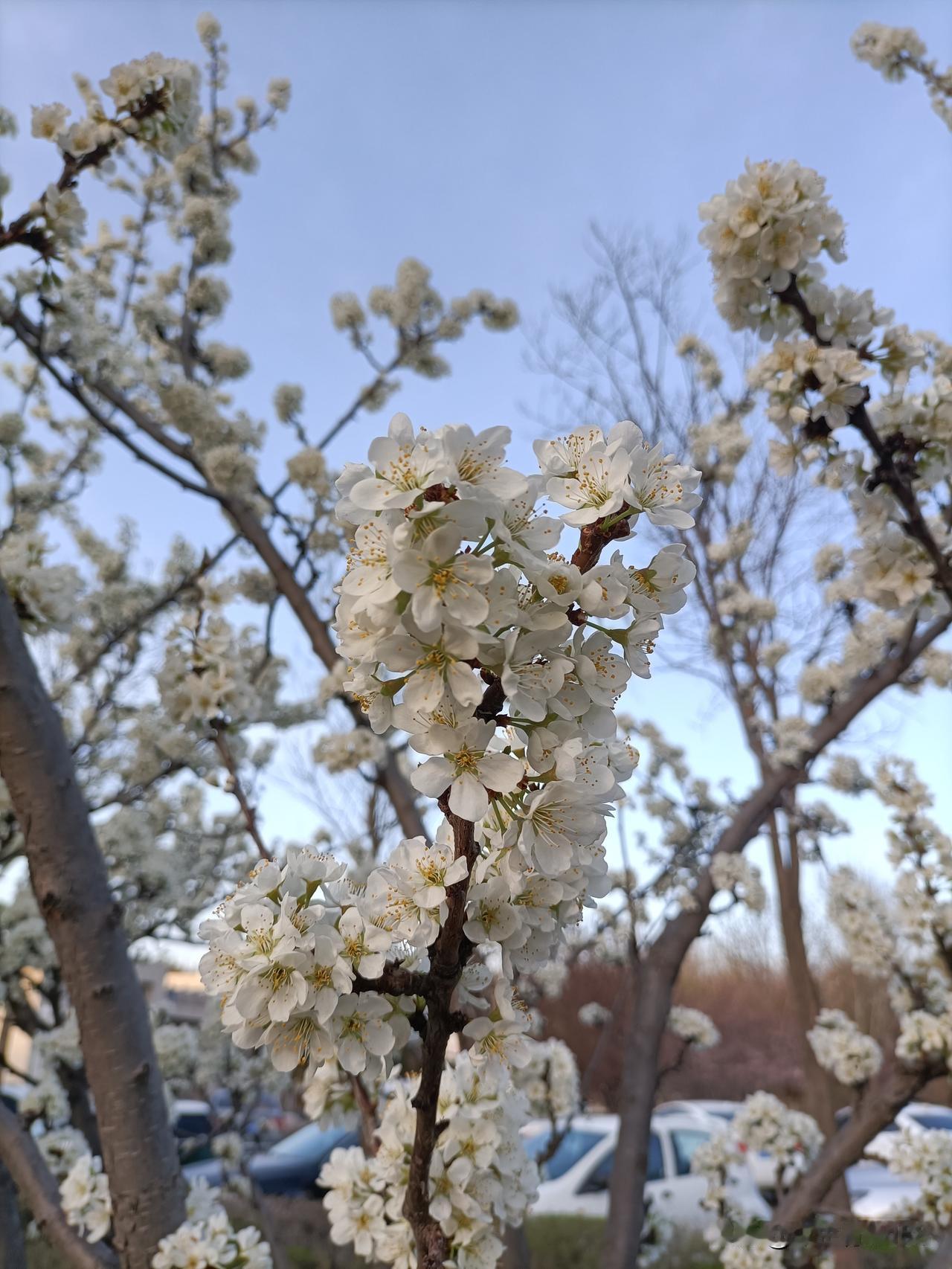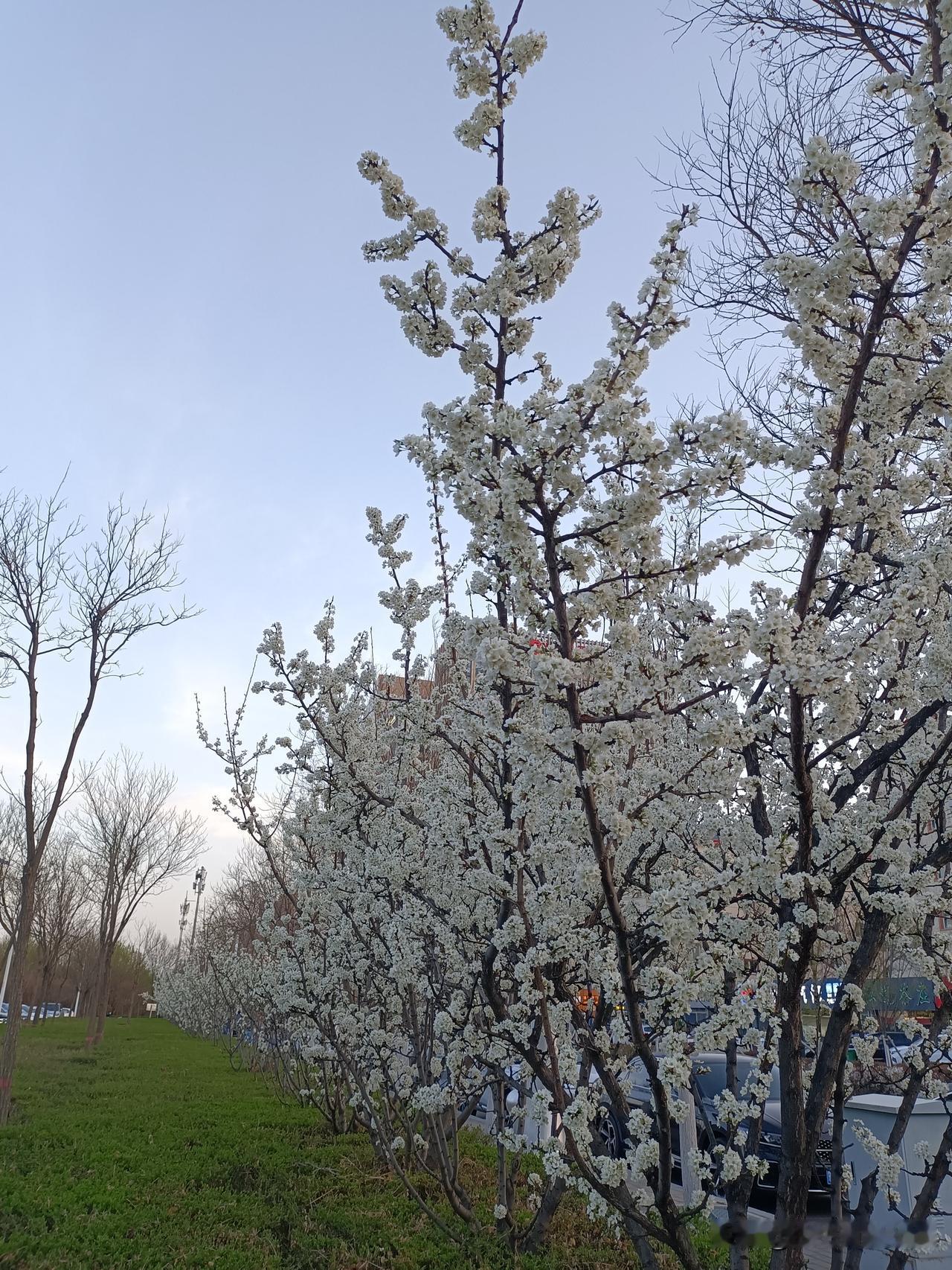 昨天晚上马路边偶遇李树花,随手拍下分享给大家。 春风拂面,李花缀满枝头,素白如