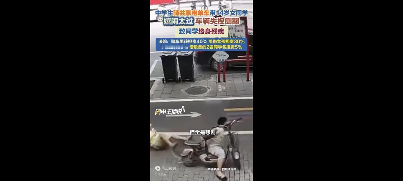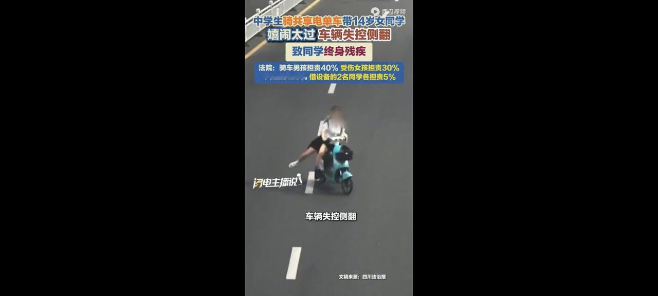 🛵中学生骑共享电单车带人嬉闹,侧翻致同学终身残疾