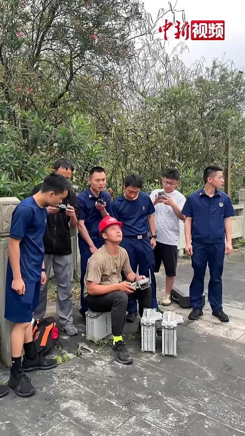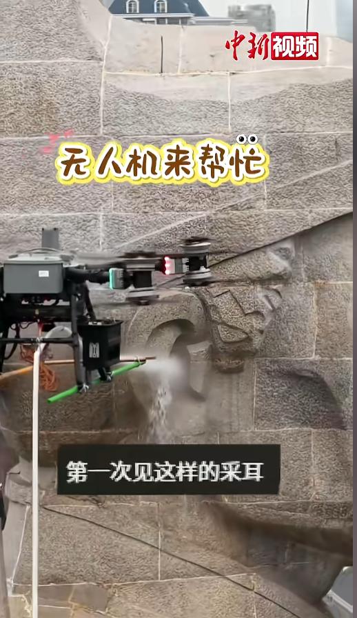 最后,消防员想了一个好主意,让无人机带着水带上去,只要能对准,高压水就能把马蜂窝给滋下来。事实证明,这个方案果然可行,不仅如此,还给雕像好好洗了个耳朵。