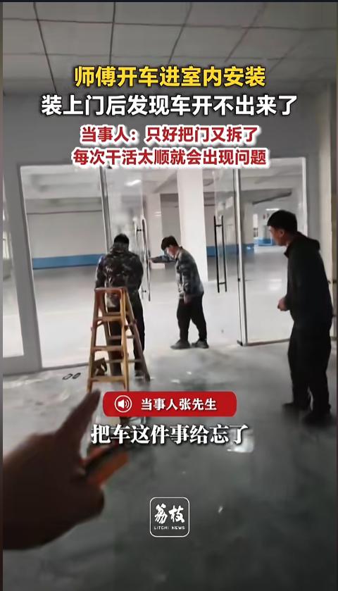 信息来源:《师傅开车进室内安装 装上门后发现车开不出来了 当事人:只好把门又拆了 每次干活太顺就会出现问题》荔枝新闻