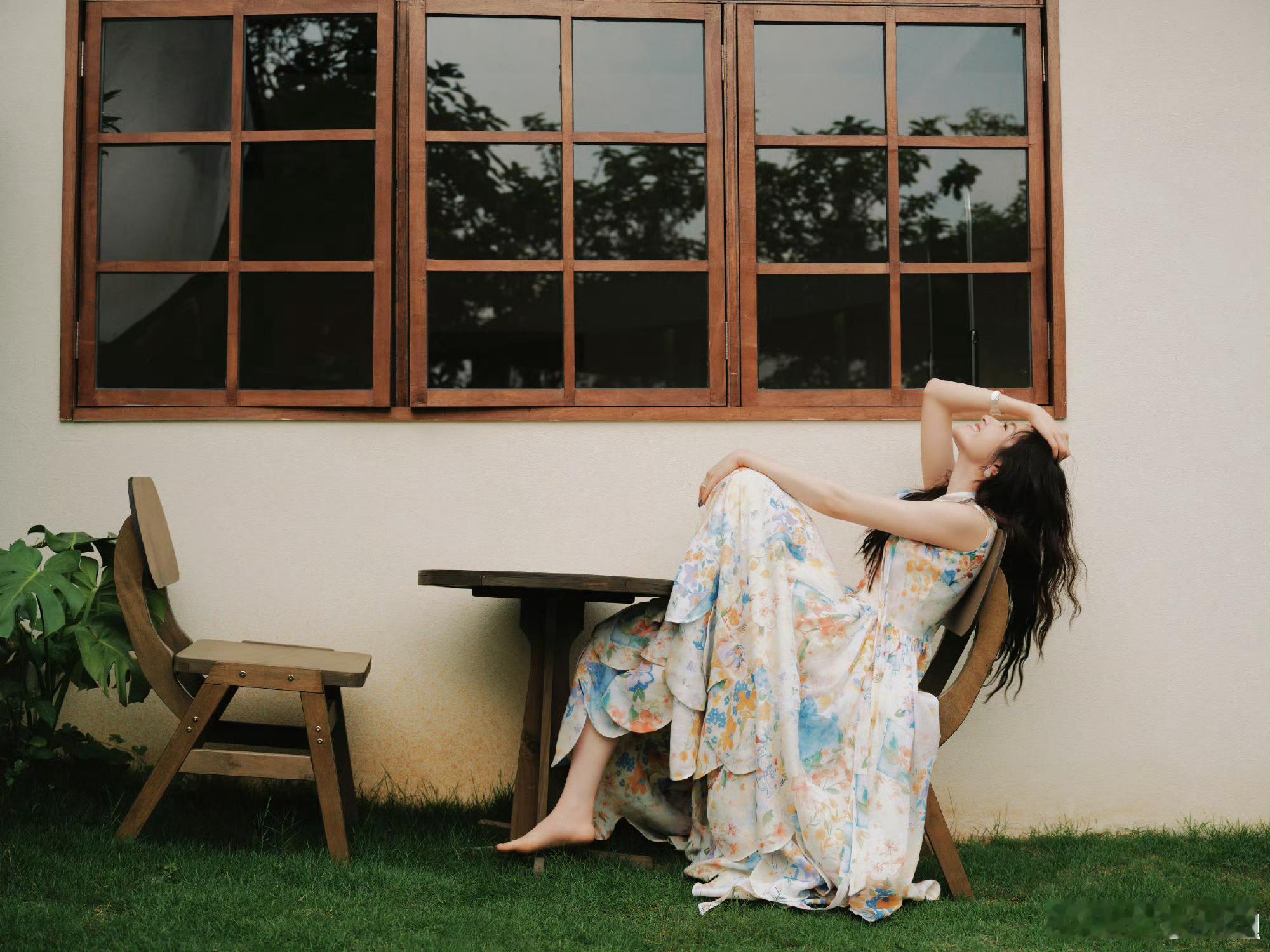 李兰迪像是从油画里走出来 李兰迪这组照片状态绝了!一袭淡彩碎花长裙,温柔得像春日