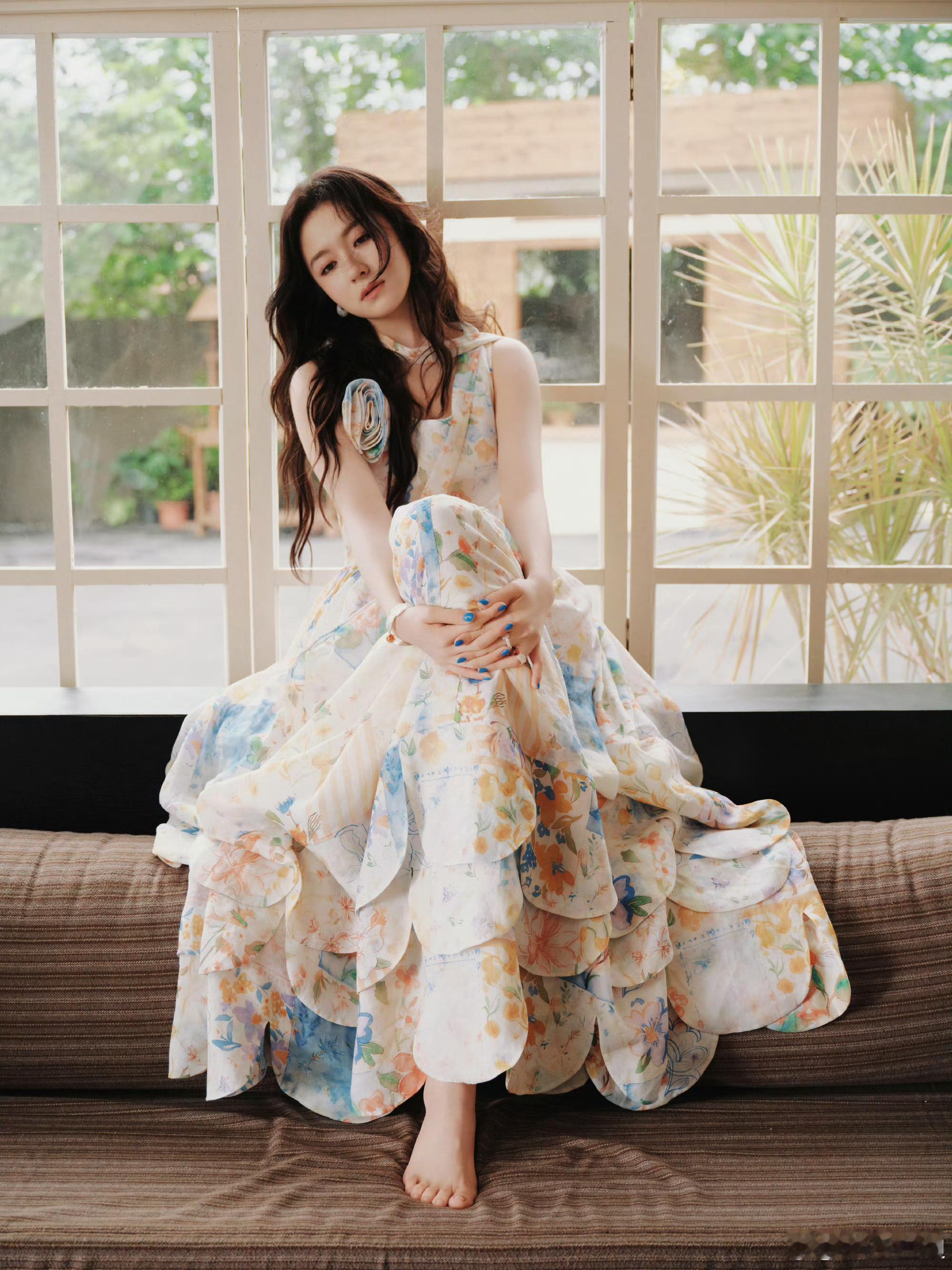 李兰迪像是从油画里走出来 李兰迪这组照片状态绝了!一袭淡彩碎花长裙,温柔得像春日油画里走出来的少女,美得像画报~
