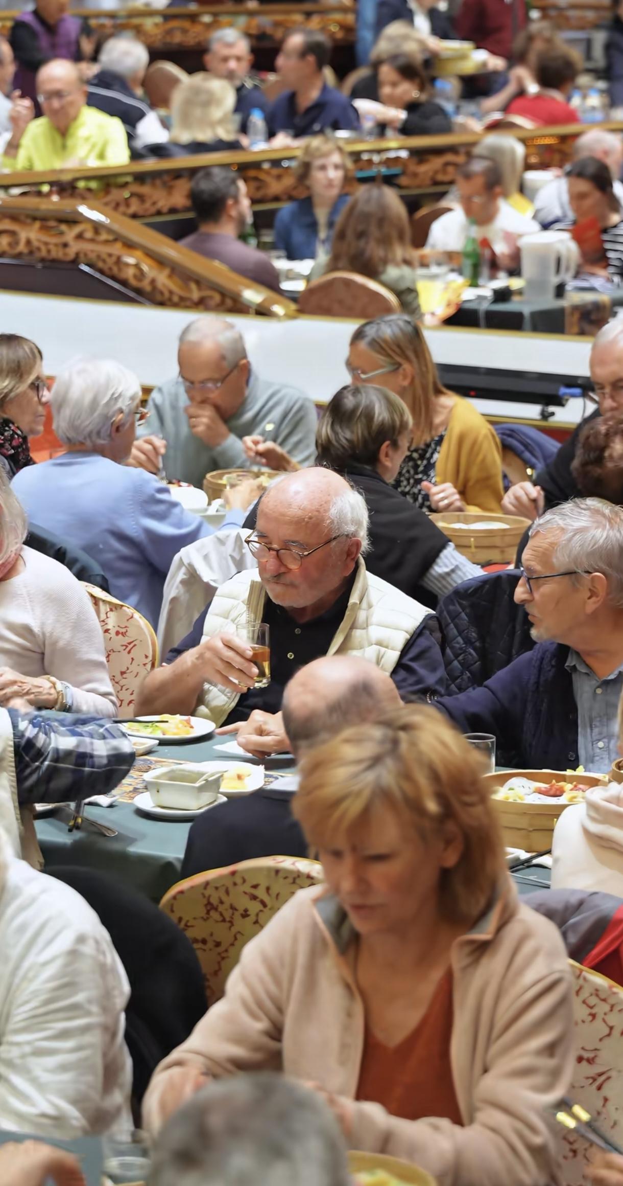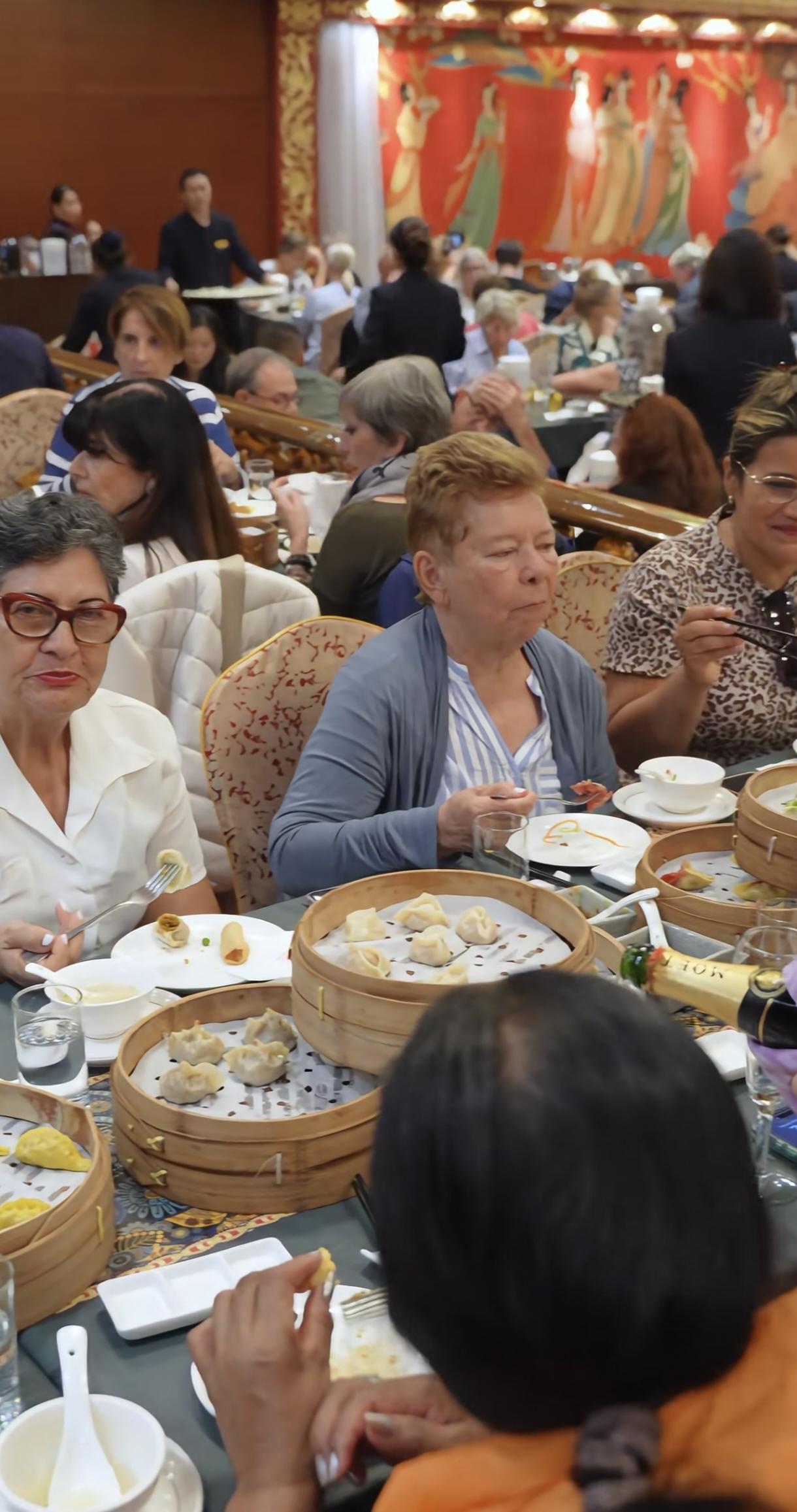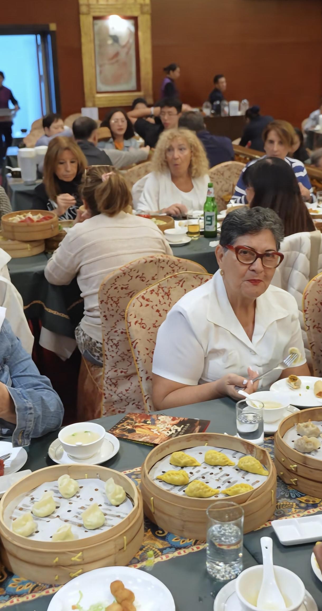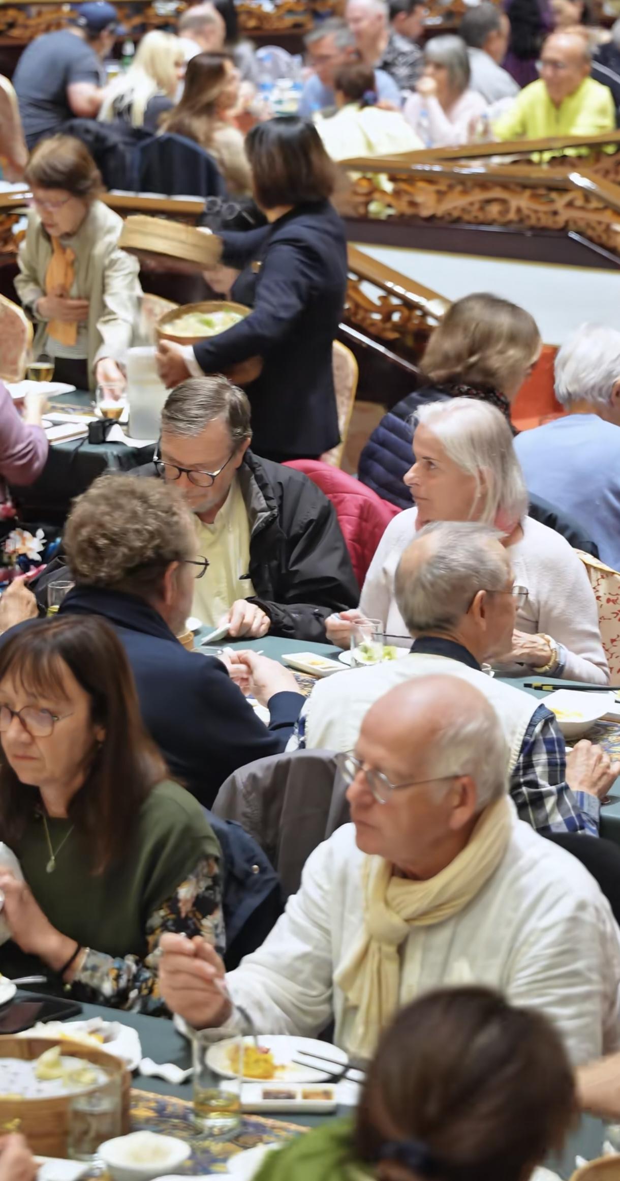 外国夕阳红旅游团,天呐,乌泱泱的。筷子都用得有模有样,这个酒楼的老板确实赚大发了