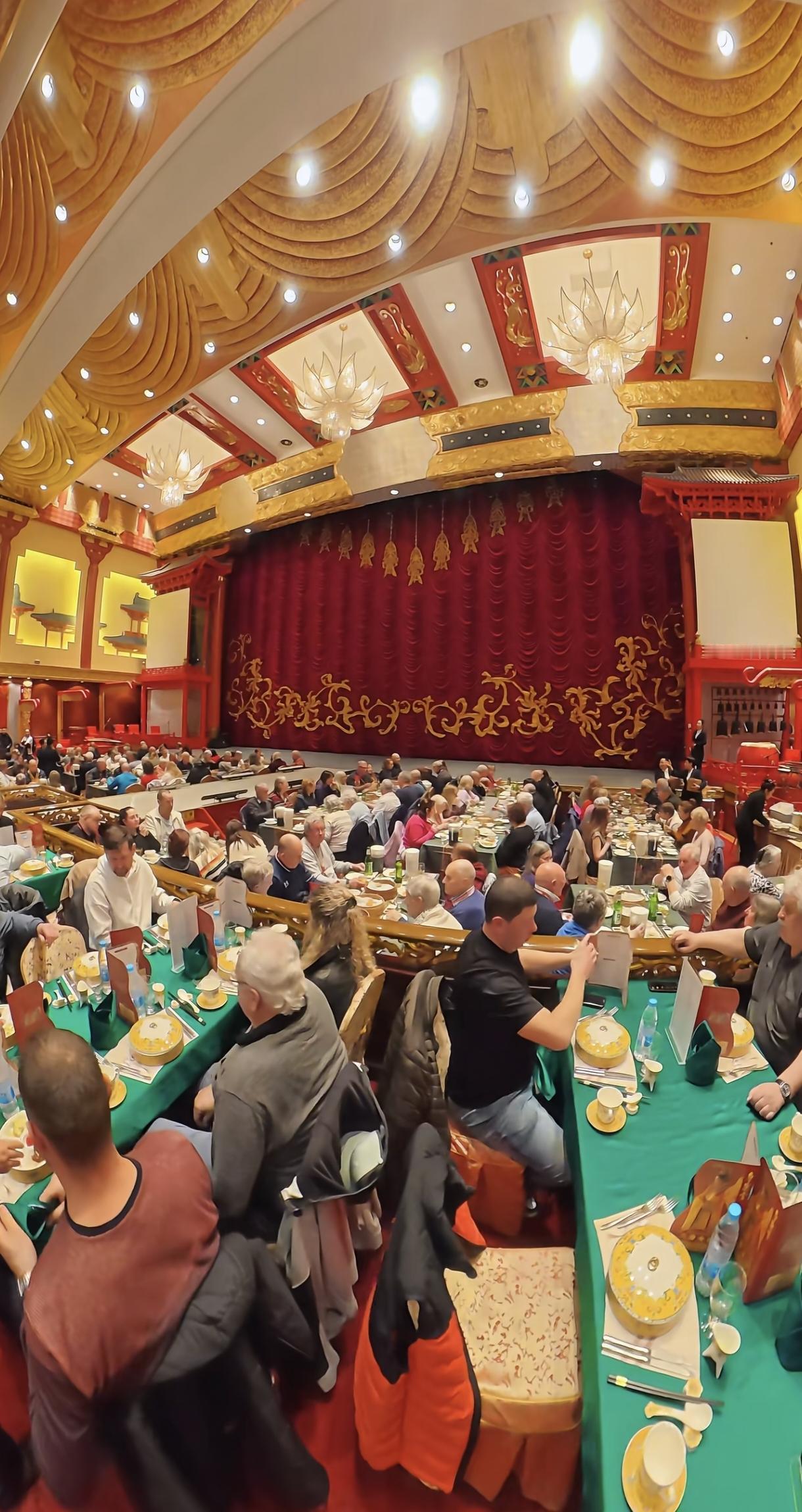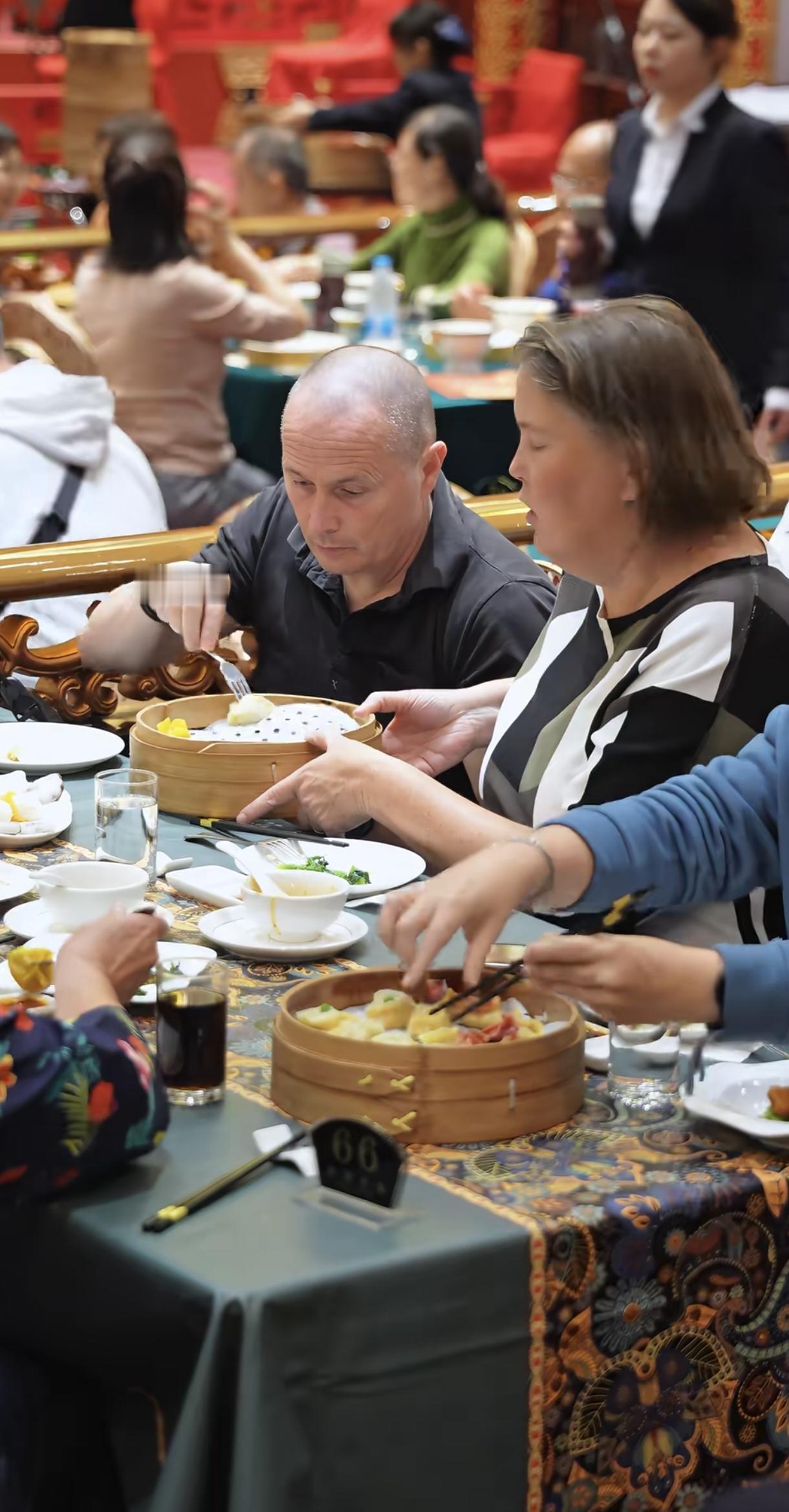 外国夕阳红旅游团,天呐,乌泱泱的。筷子都用得有模有样,这个酒楼的老板确实赚大发了,每次都是坐满的老外。祝外国友人好好品尝中华美食,感受融含着中华民族数千年的文化底蕴!