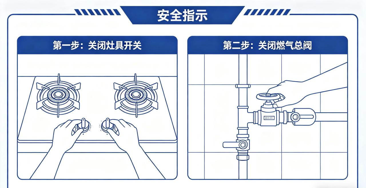 ① 做完饭“双重确认”:先关灶具开关,再关燃气总阀,两个动作一个都不能少。