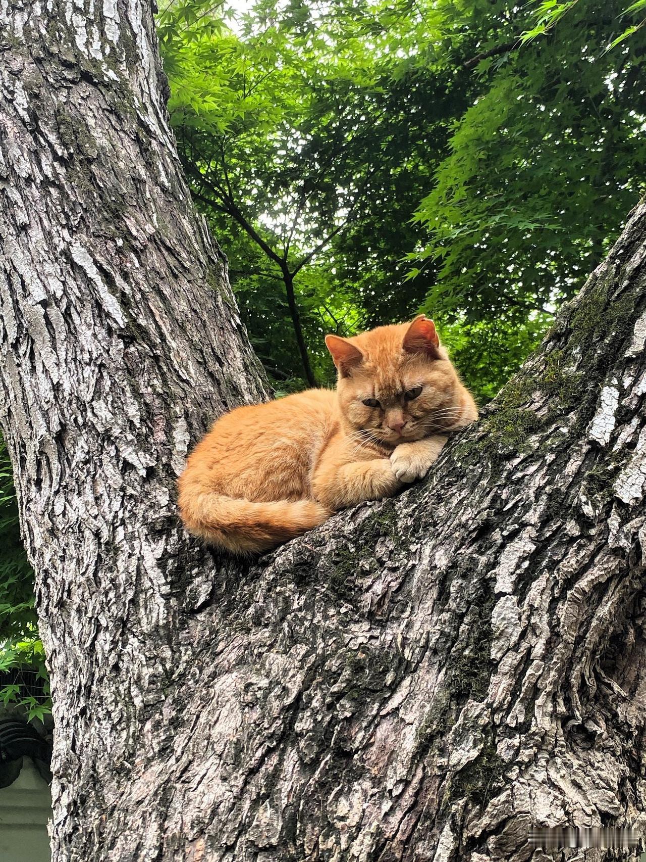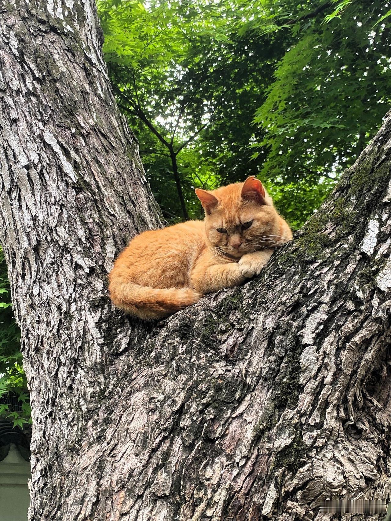 今天离开虎丘北门时,遇到了这只橘猫。它好像专门趴在正对北大门的树上,等着进出的人们给它拍照。
