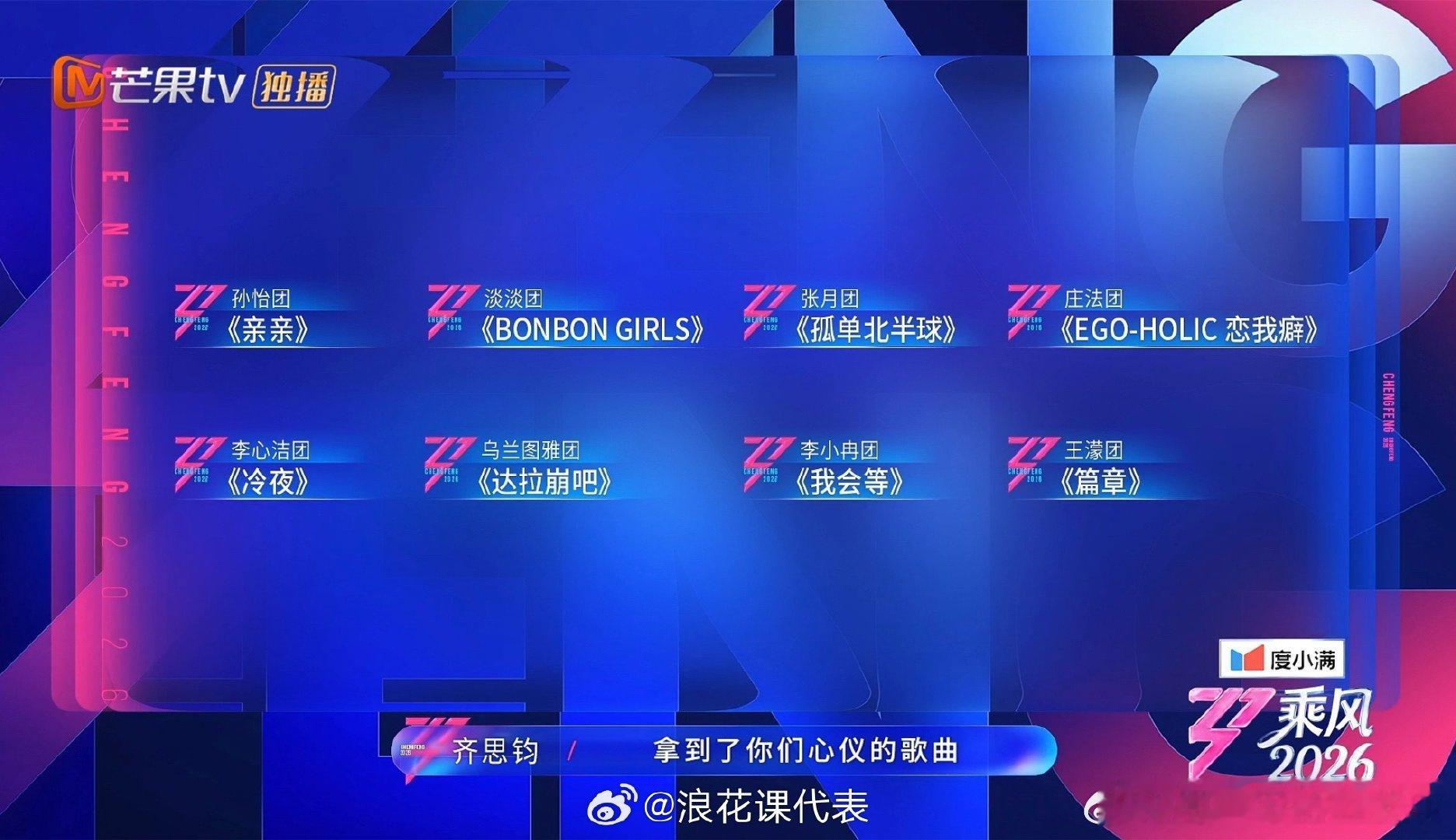 浪姐今晚不直播乘风2026 今晚不直播!今晚不直播!今晚不直播!重要的事说三遍!!二公舞台将于下周五(4.24)晚上19.30直播!