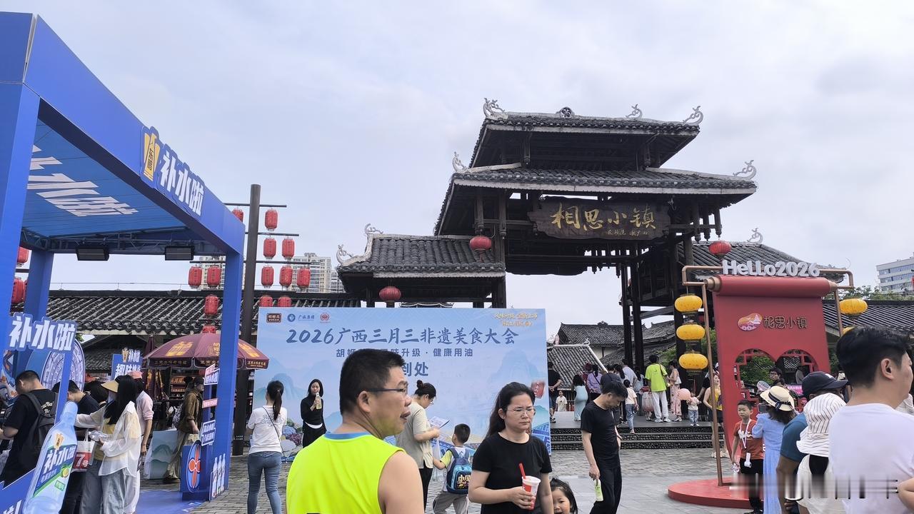 虽然广西南宁一大早就下起了大雨,到了中午才停,但也丝毫影响不了大家过三月三的心情。下午去了一趟南宁的相思小镇,还没有进到里面,就看到门口这里人山人海了,有跳竹竿舞的,很多人都跃跃欲试,虽然跳起来手脚看着并不协调,但是自己开心就好,每个人脸上都堆满着开心的笑容。还有各种各样的民俗活动,比如品尝油茶以及唱山歌,打卡拍照等,这个地方也非常适合拍照打卡,这样子拍都非常的出片,尤其是现在节假日,穿民族服饰的人很多,所以来这边拍照打卡的人也是特别的多。逛一拳下来,除了拍照打个,还有吃喝玩乐应有尽有,这个地方真的是涩,何来游玩了,大家一定不要错过。