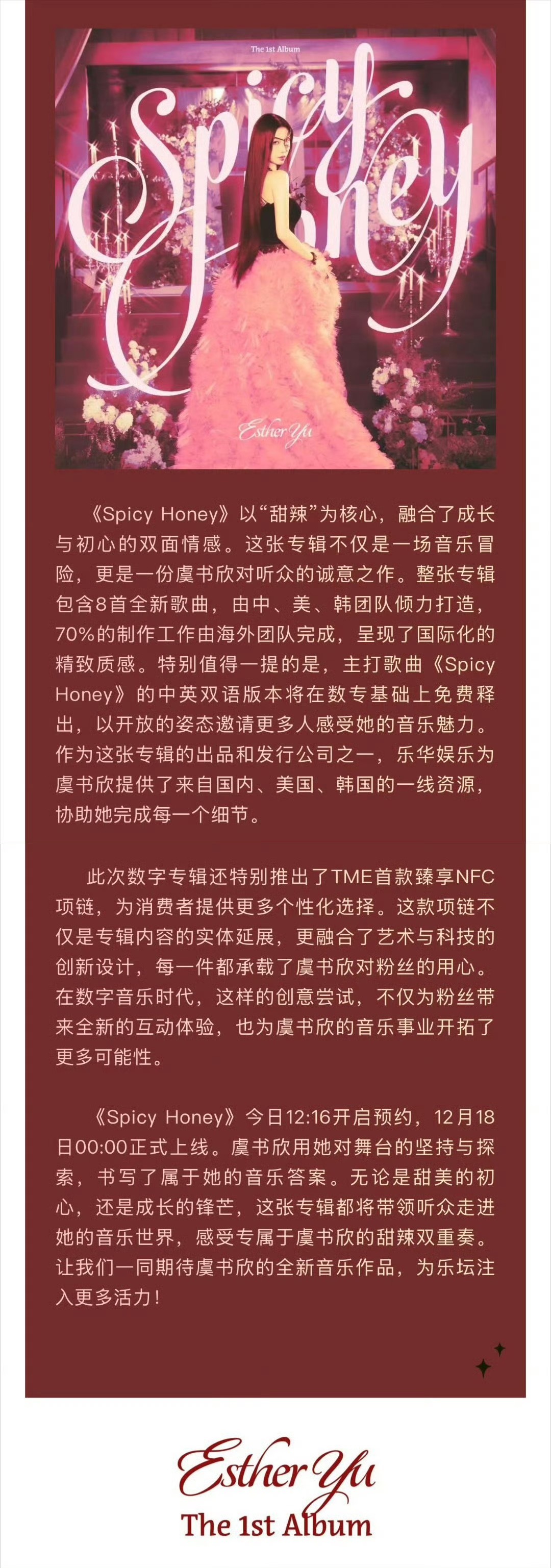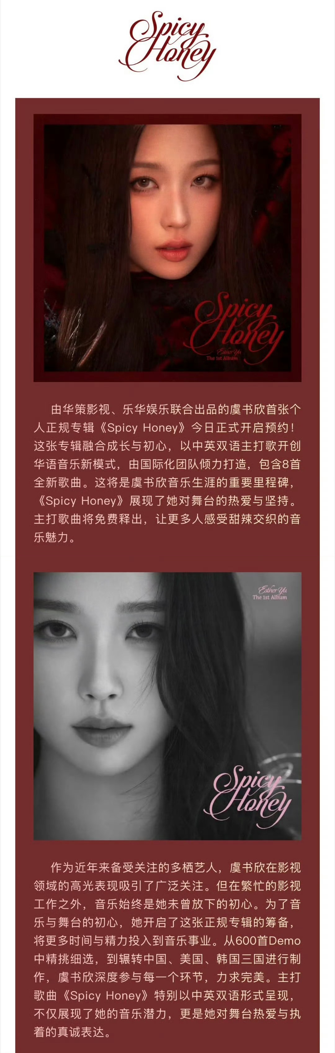 玛雅,嘿虞书欣之前,能不能做点功课否则会让人觉得你整天尬黑好无聊…虞书欣首张个人专辑《Spicy Honey》是由中国、美国、韩国三个国家的顶尖音乐团队及制作人共同打造!专辑同名主打歌《Spicy Honey》由中国的金牌制作人许荣臻操刀制作美国的制作人Rob Grimaldi参与了专辑收录曲《How Not To Be》的制作韩国制作人Daniel Klein参与了收录曲《Girls Night Out》的制作,MV由韩国知名团队Studio Saccharin执导
