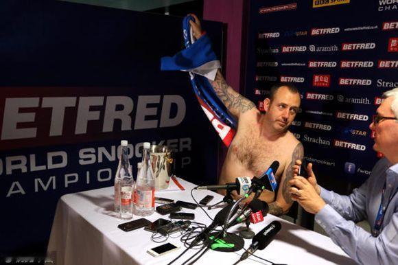 而且威廉姆斯也不是说说而已,2018年赛前,他说如果第三次夺冠,就裸体参加记者会。决赛威廉姆斯18-16击败希金斯夺冠,记者会他裹着一个毛巾出场,坐下后直接扯下毛巾,这就是斯诺克历史上的经典名场面。