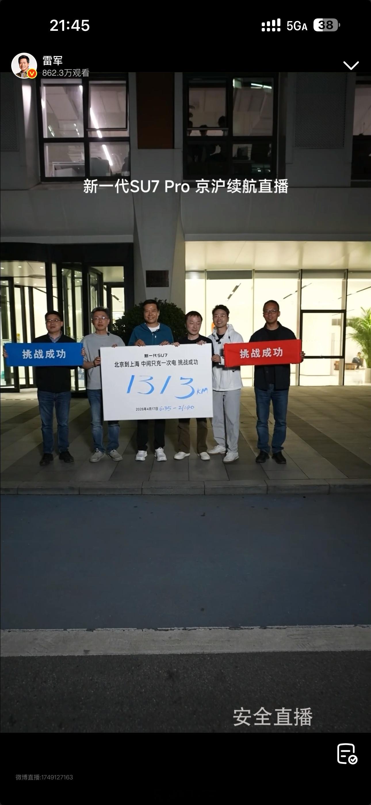 【雷军到达上海后还有余电】今日,雷军驾驶新一代SU7 Pro从北京开往上海,并全程直播。雷军称可以开给大家看200公里刹停雷军直播全程1313公里只充一次电