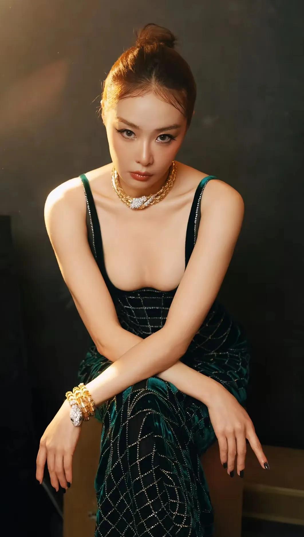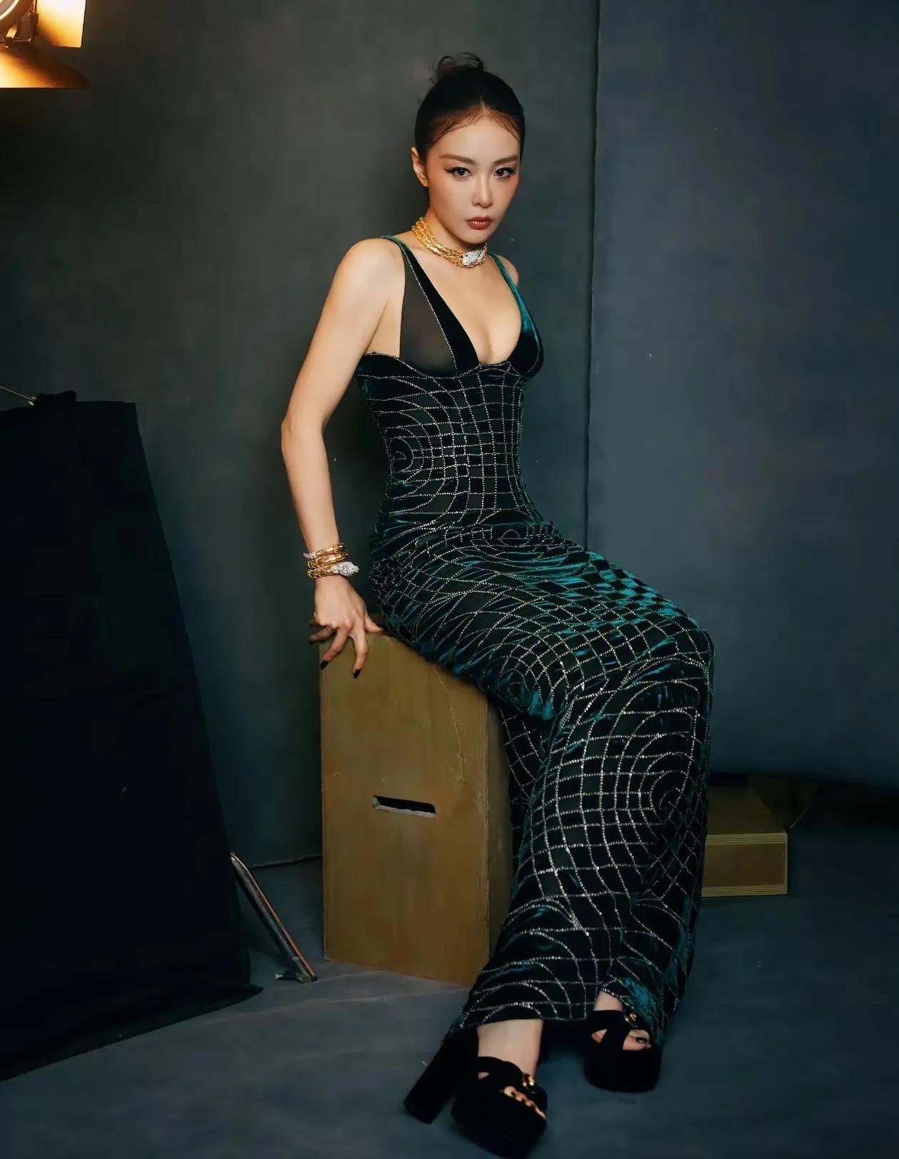 北京国际电影节这波造型太绝!🔥 一袭墨绿丝绒长裙亮相,将奢华与性感完美融合。修