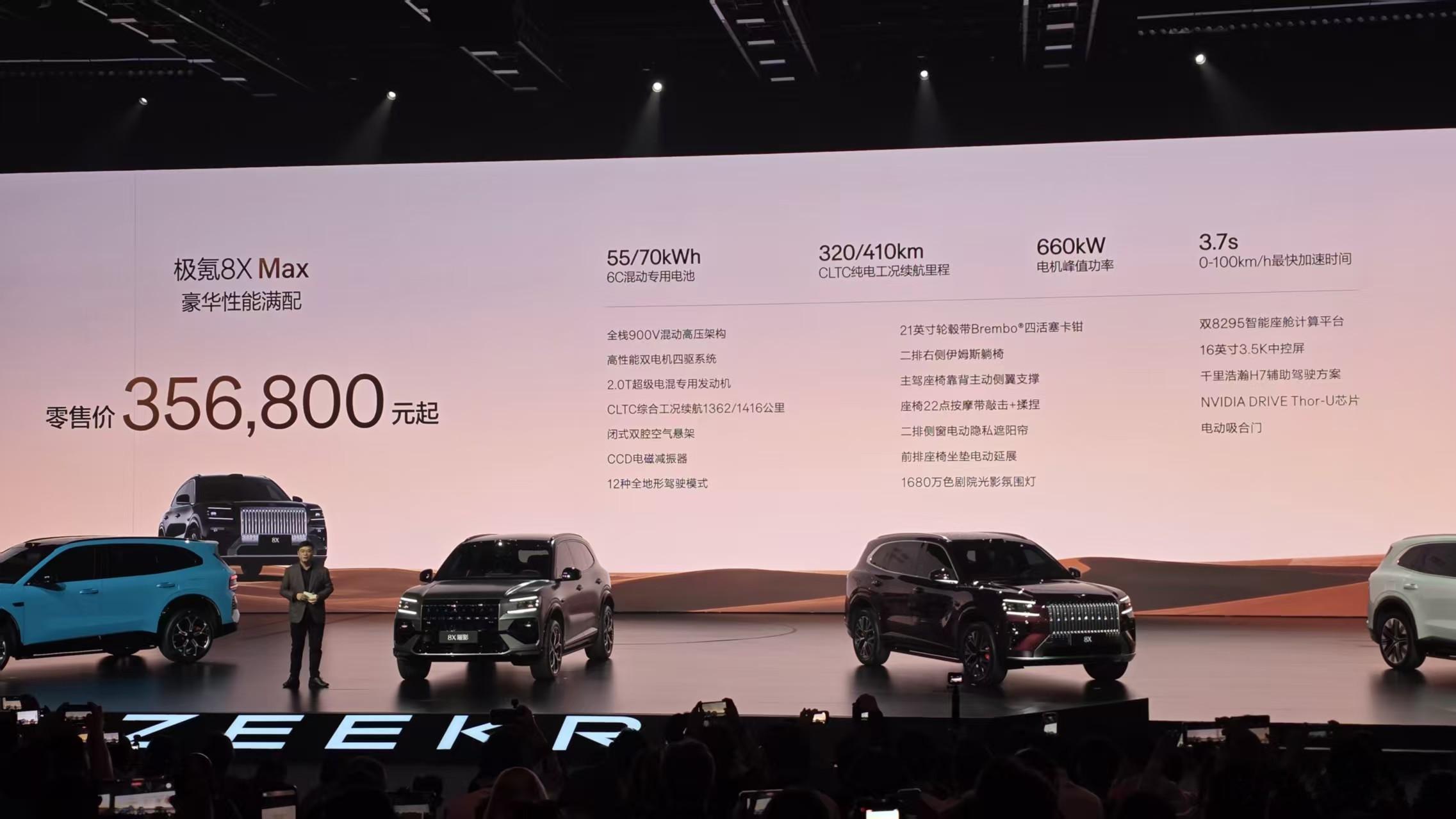 极氪8x 正式价格从35.68万起,最顶的版本50.08万。