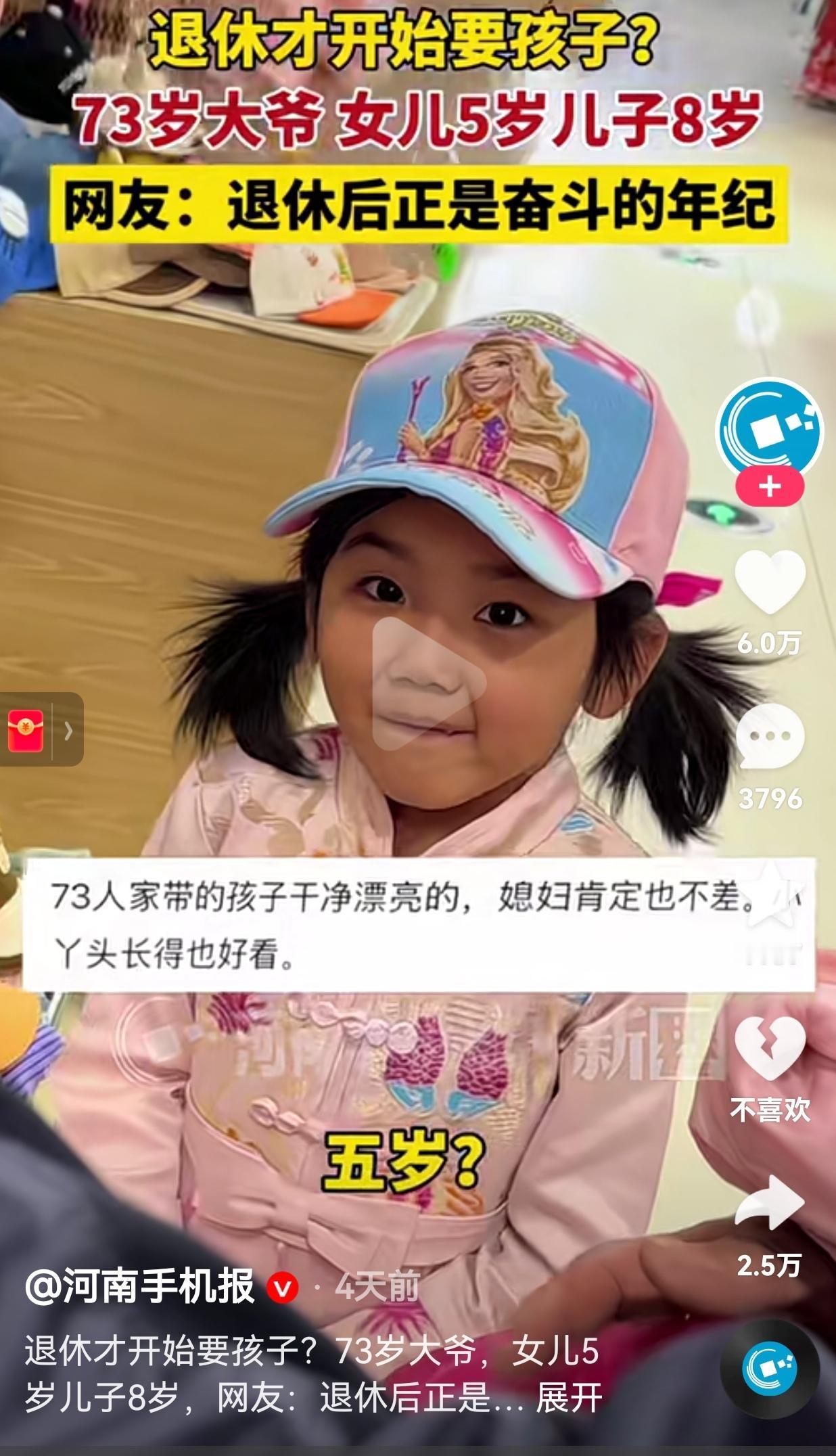 这事儿真的越看越上头,73岁的人,儿子8岁女儿5岁,搁谁不得愣三秒!
