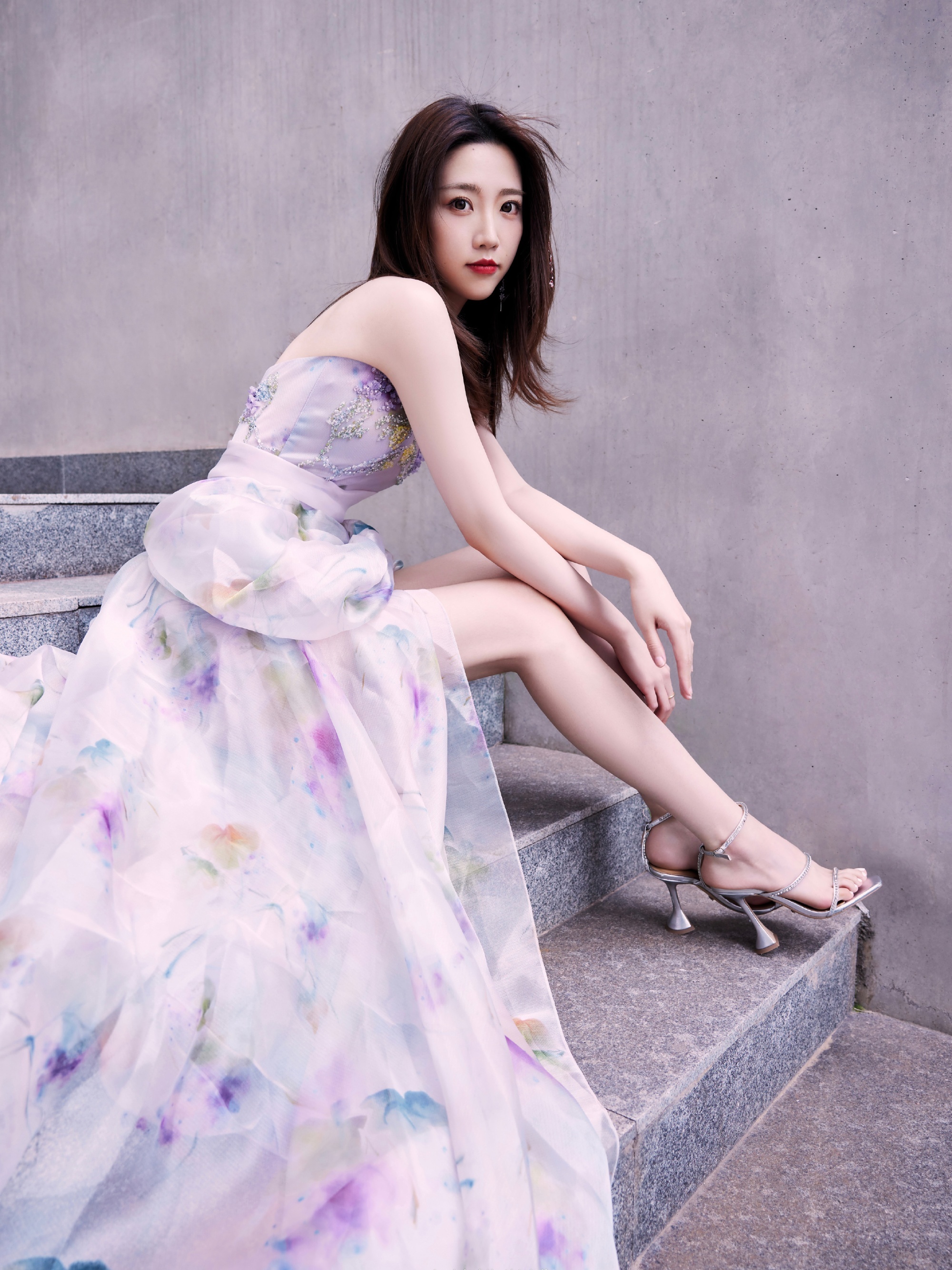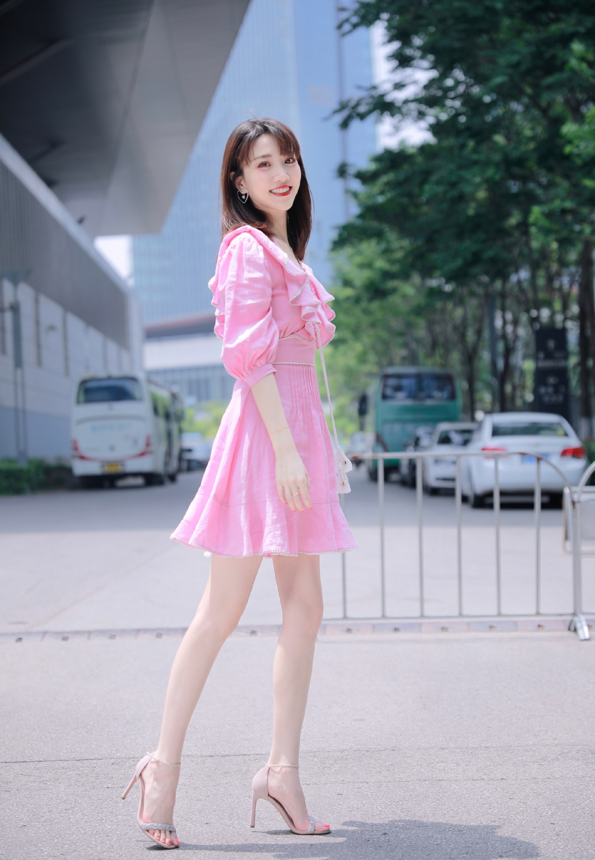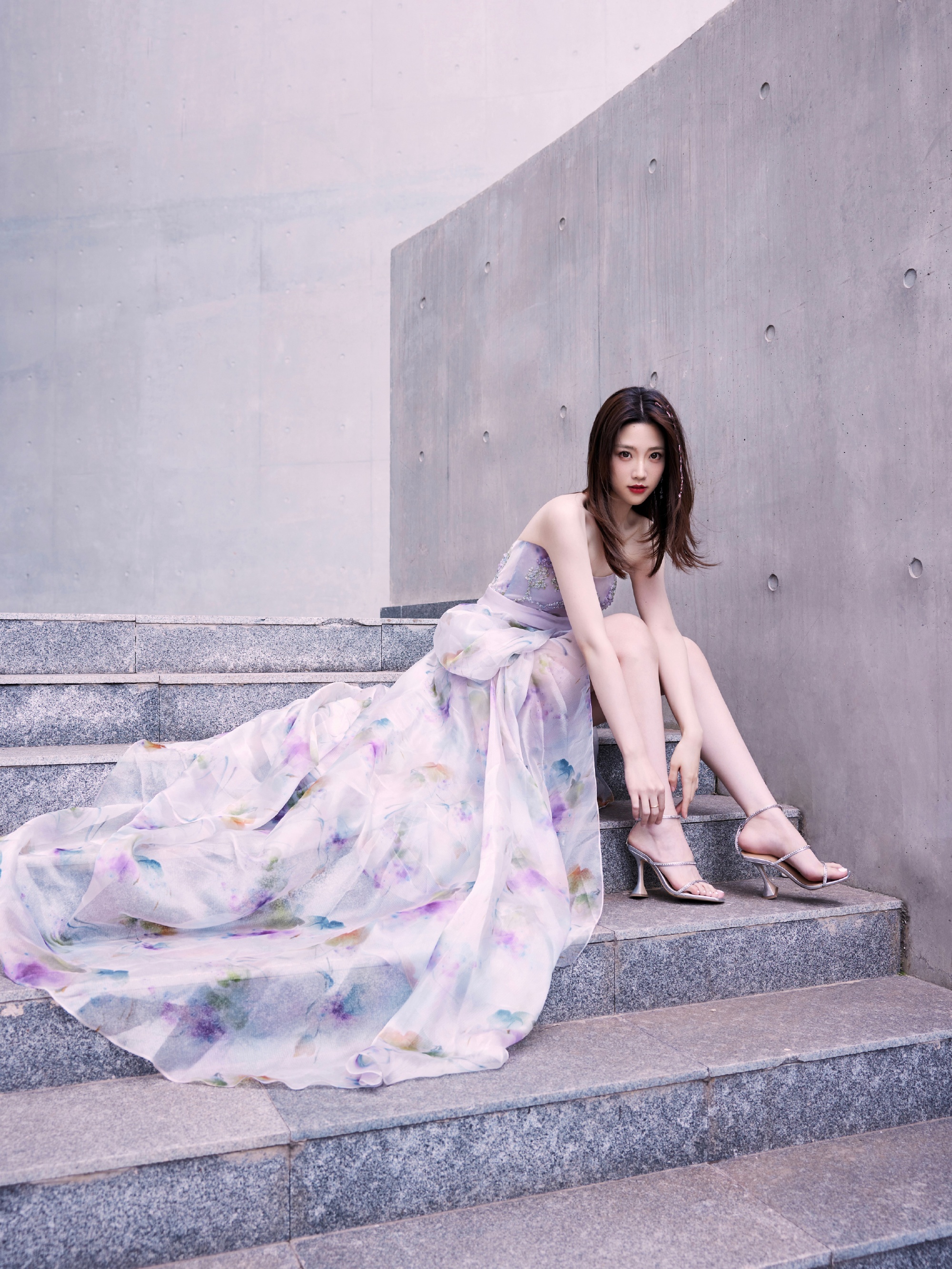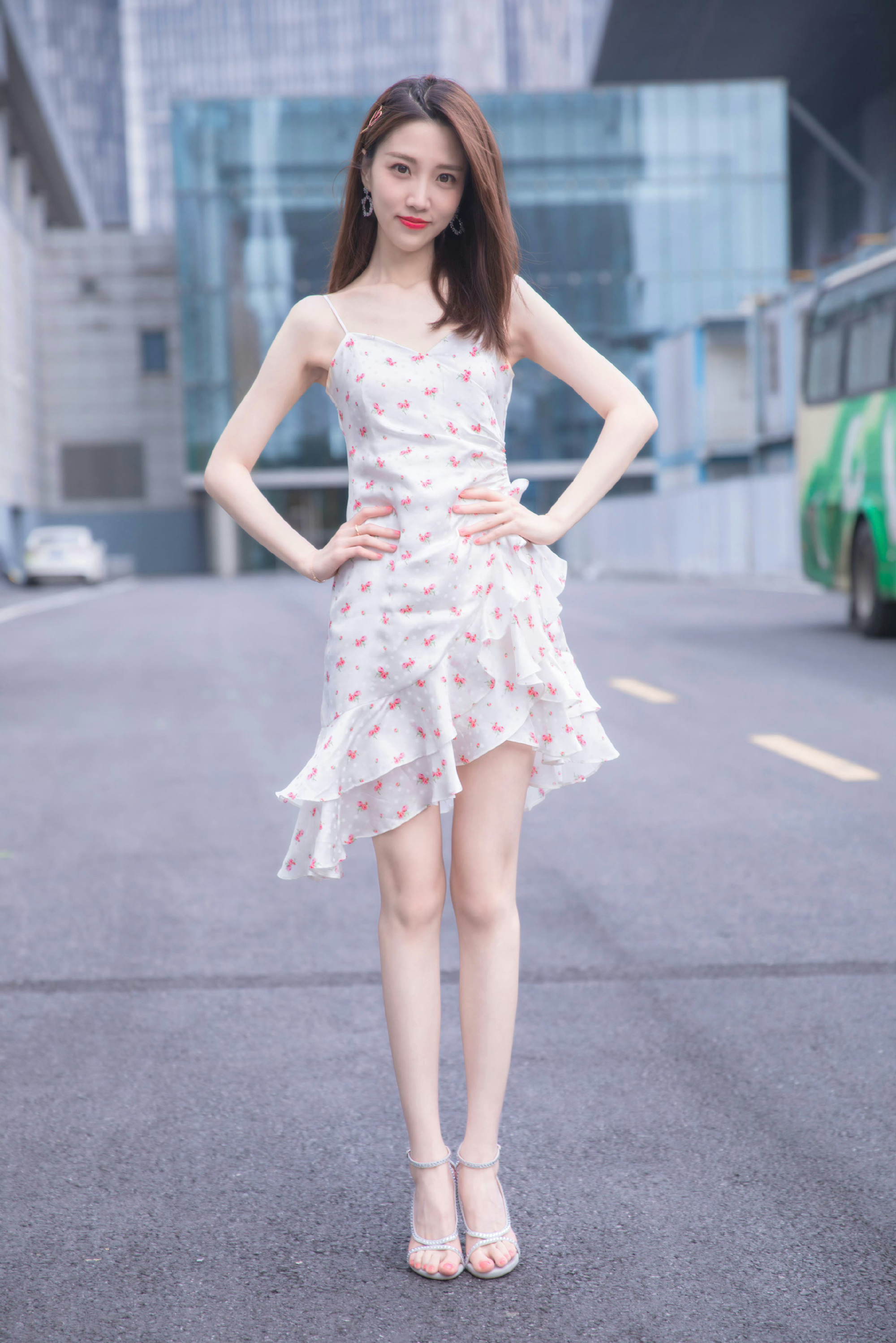 张纯烨高挑长腿美学穿搭,裙摆轻盈,纤纤而立。张纯烨