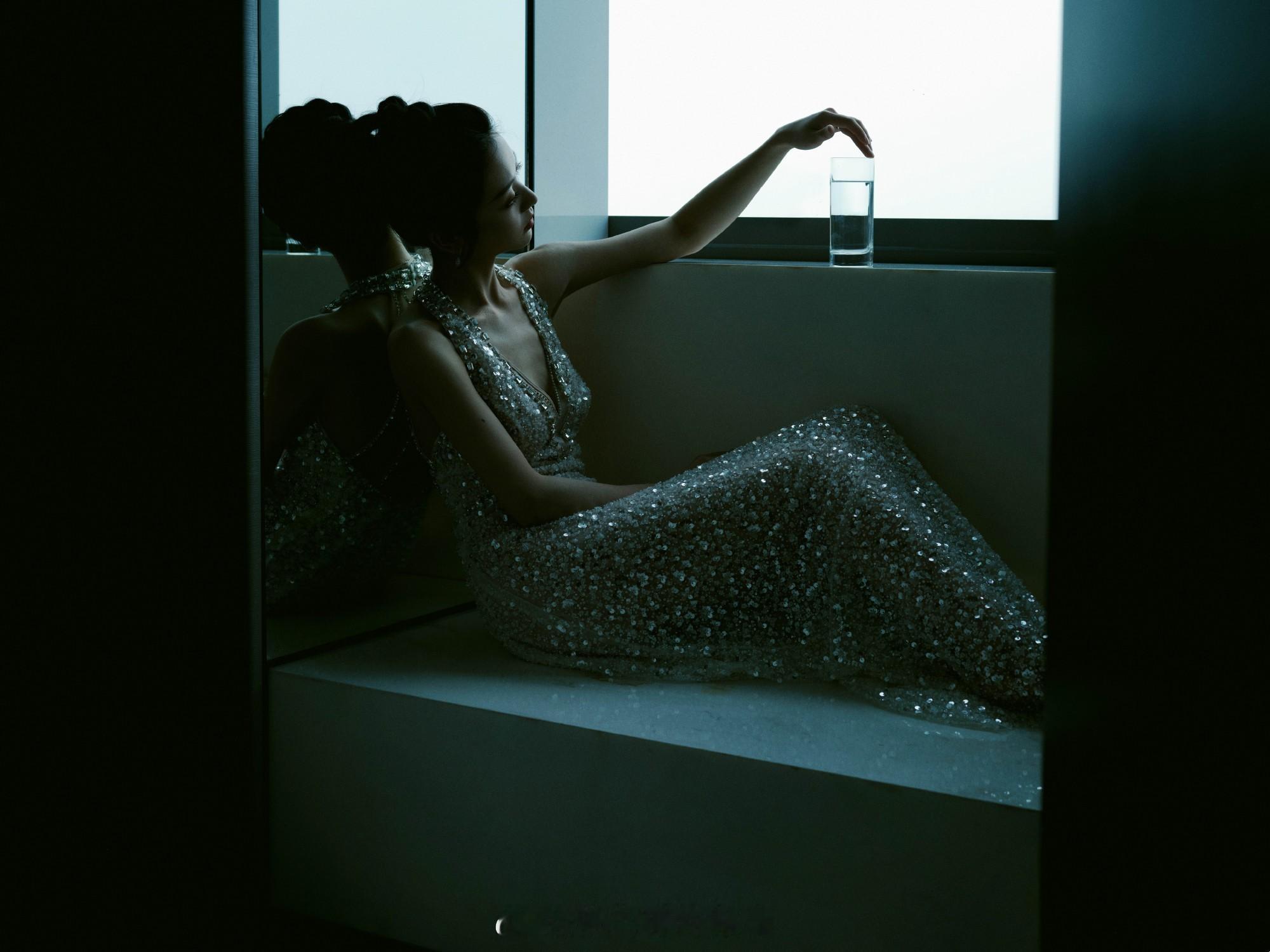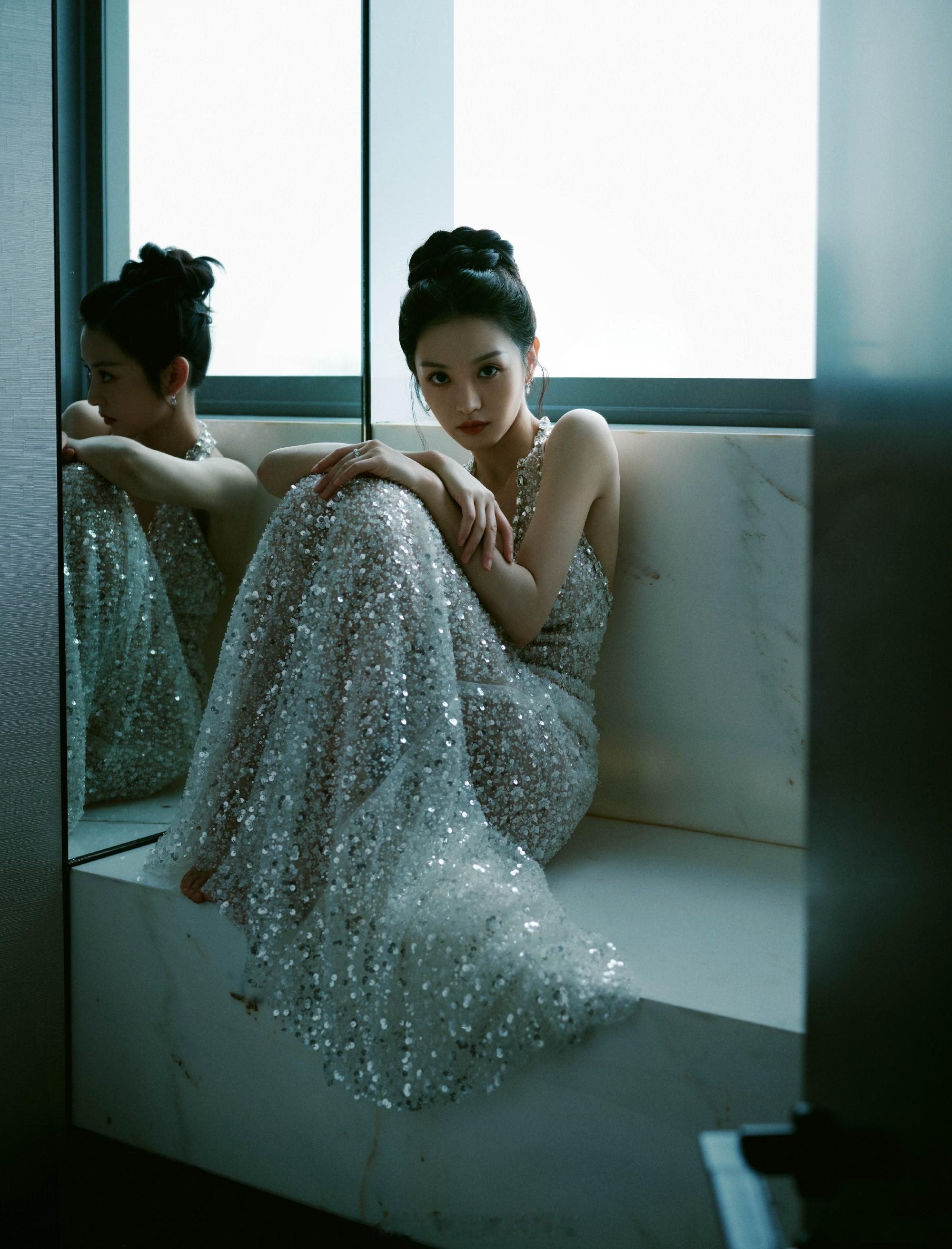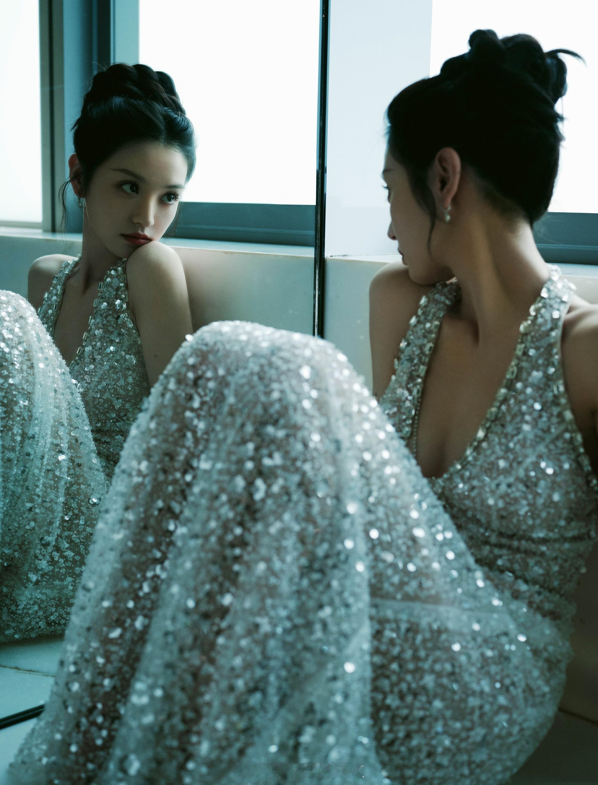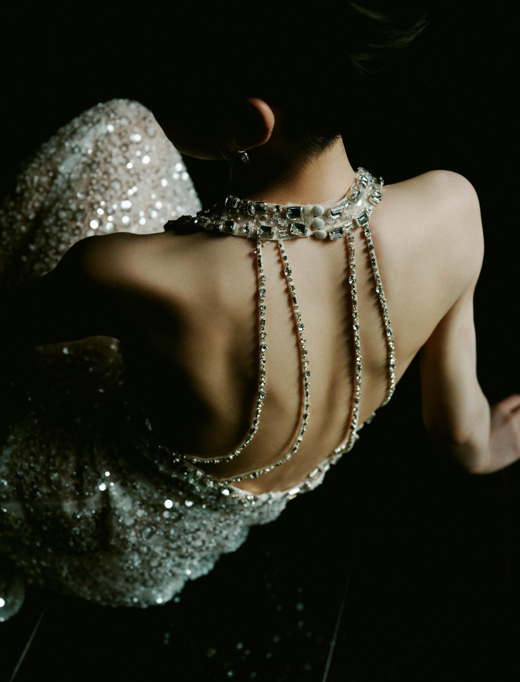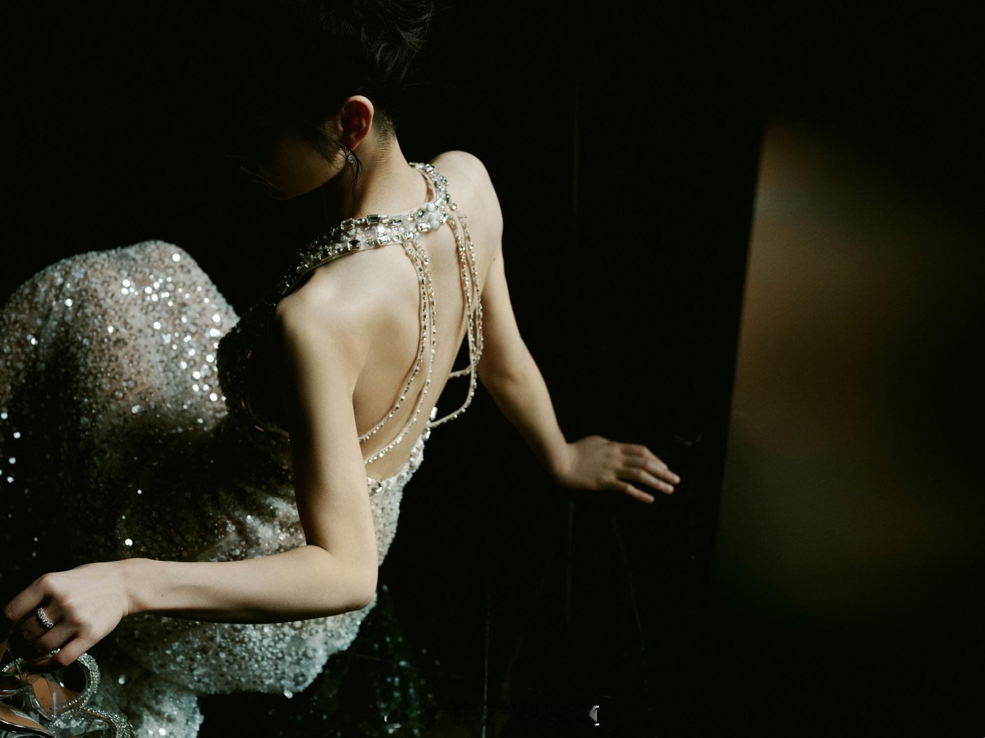 周冬雨裸半背造型啊啊啊啊啊周冬雨的背真的又薄又美~粉色亮片鱼尾裙搭配大露背设计
