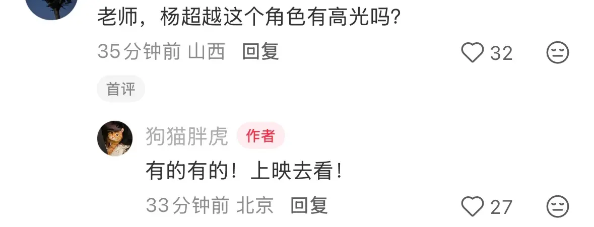 “杨超越的脸很适合大银幕,演的超棒很美,金句频出”