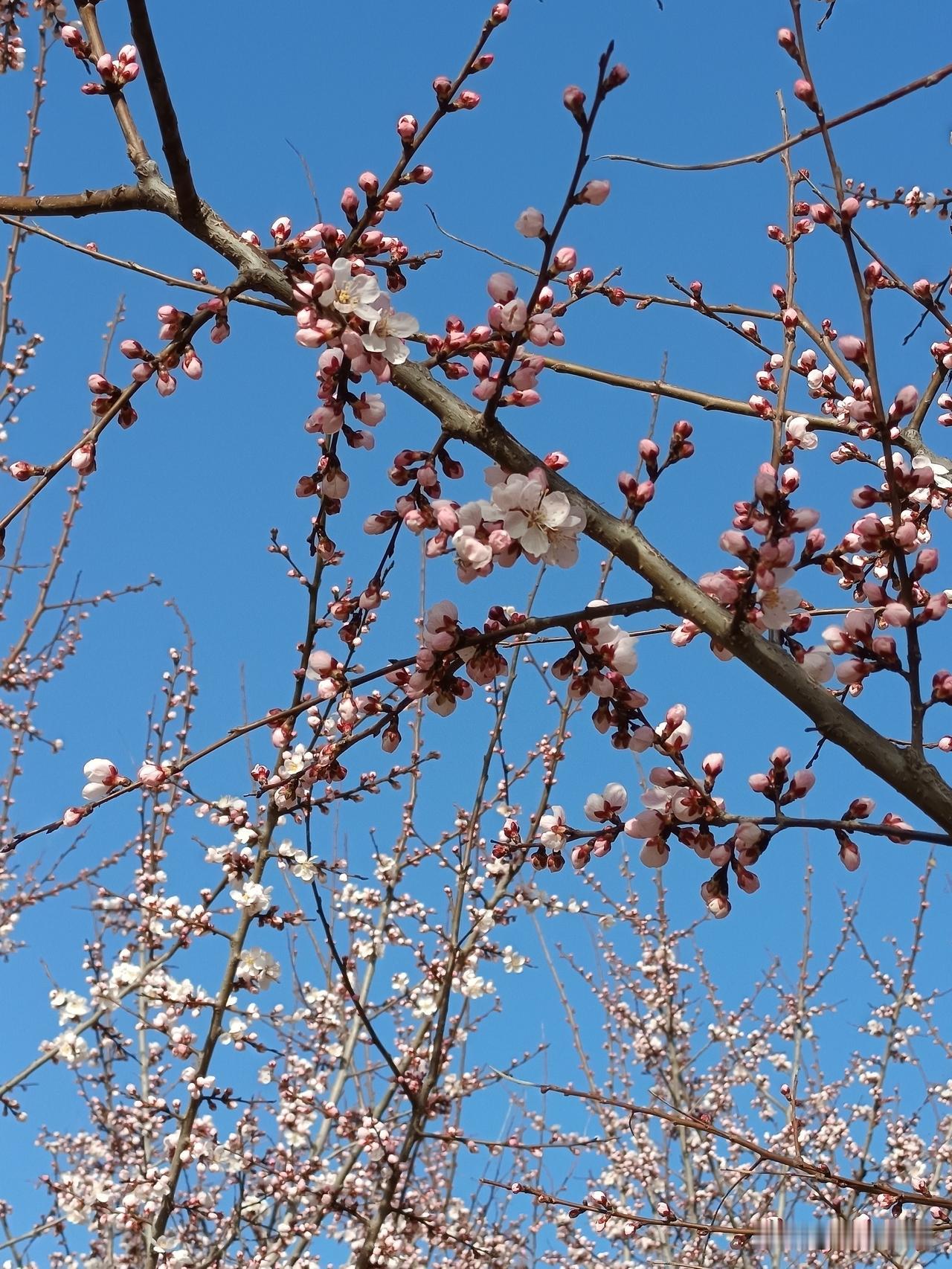 春水绿如蓝,满树杏花探水来。粉白杏花映画面,融入云天淡色彩。春水初涨,绿得像要淌下来。满树杏花斜斜探向水面,粉的白的花瓣,倒影也跟着微微晃。