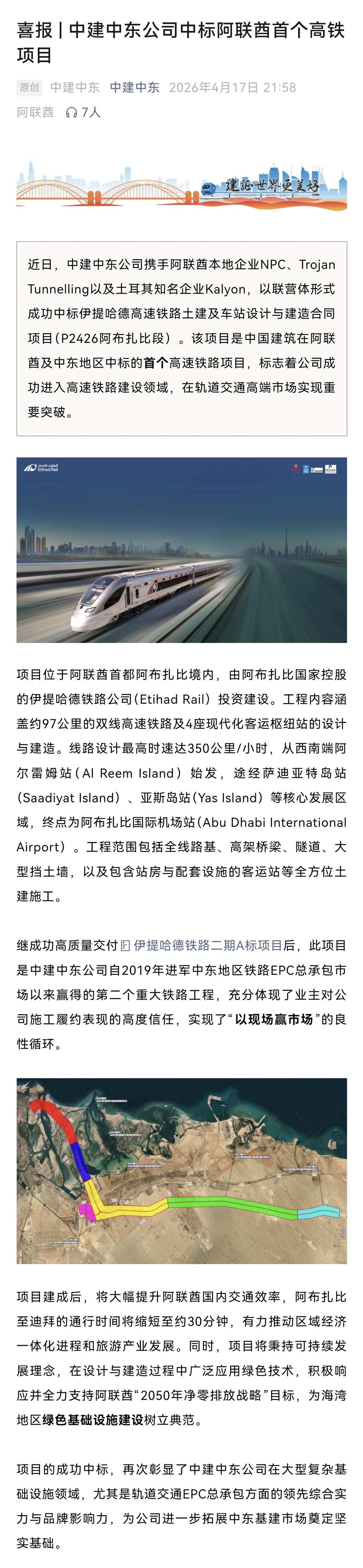 中东土豪刚回国,咱们就中标高铁大项目。。[赞]
